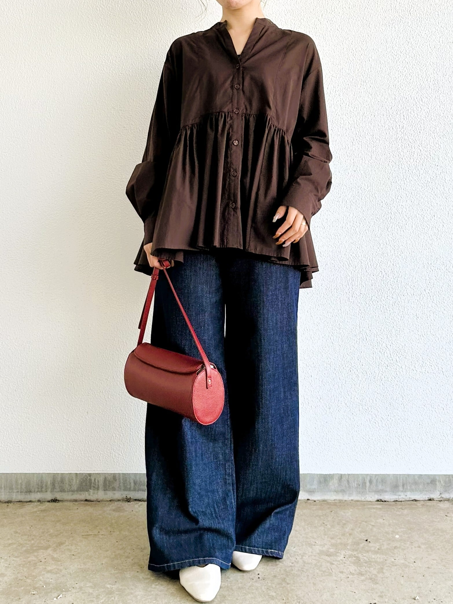 フェミニンで大人可愛いローンペプラムシャツ