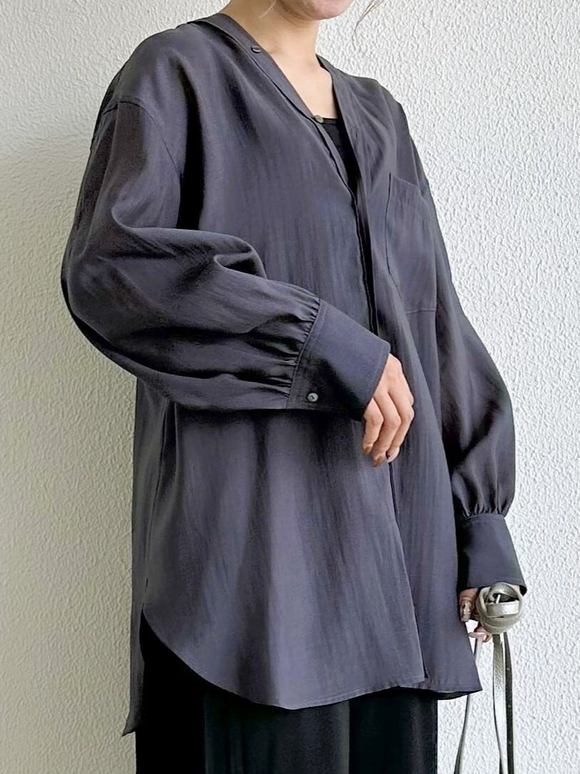 総丈(前 77cm / 後 75cm) 身巾 (タック徐)56cm 肩幅 52cm 裄丈 77cm 袖巾 24.6cm 袖口巾 11.5cm カフス巾 8cn 袖丈(袖口まで 52cm) 裾巾 (前65cm / 後62cm) 天巾 21cm 脇スリット丈 16.5cm