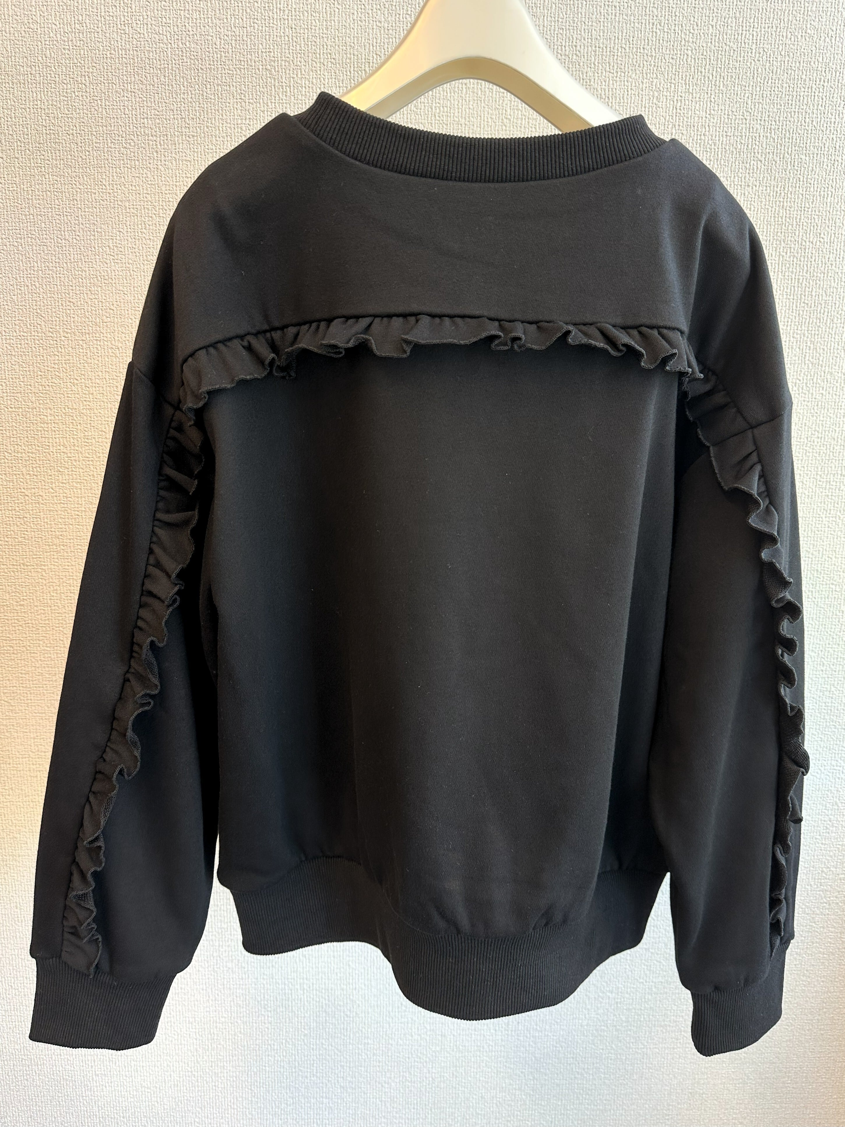 裏毛バックフリルプルオーバー。