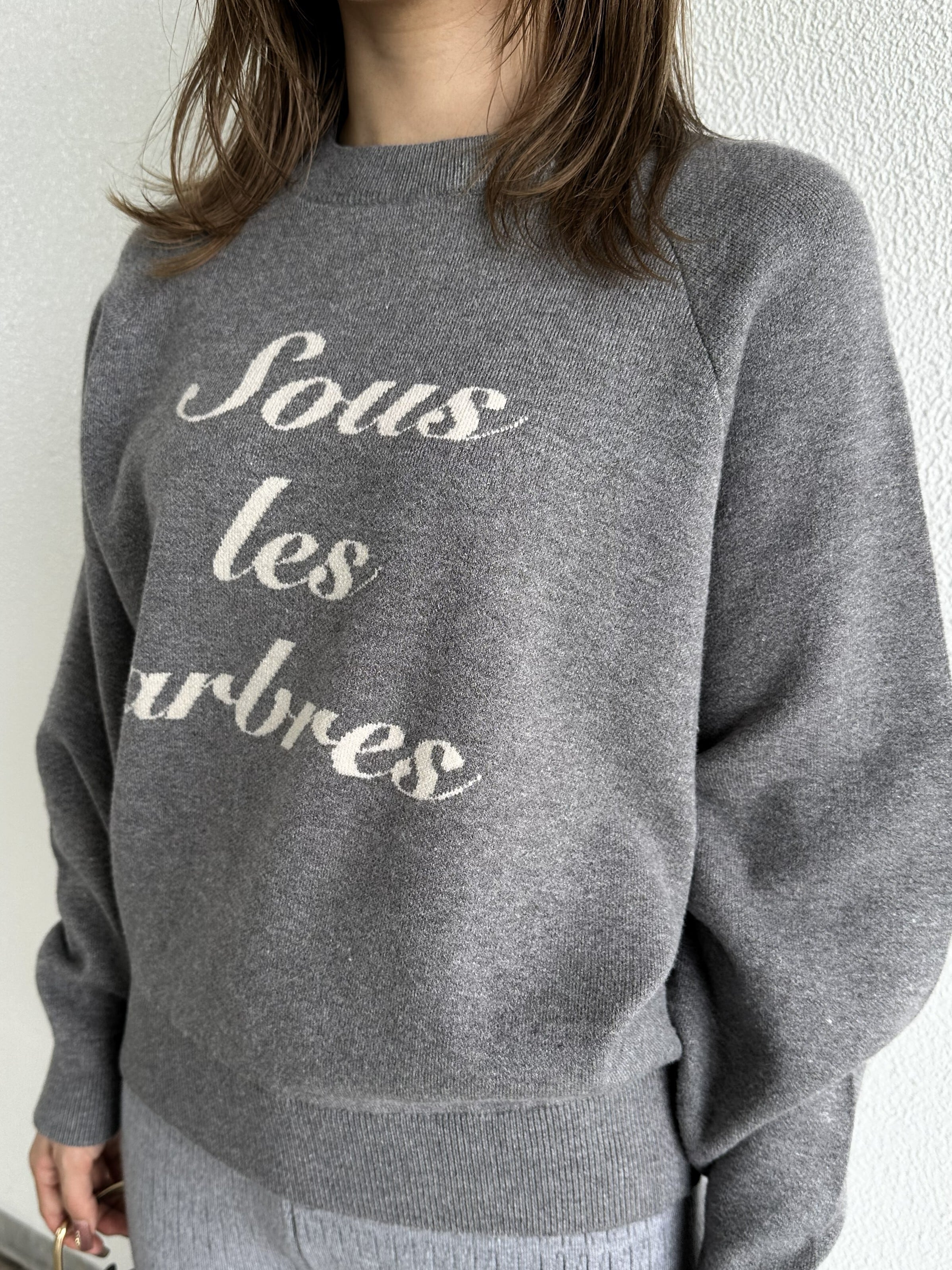 トライしやすい大人なスウェット風ニット。