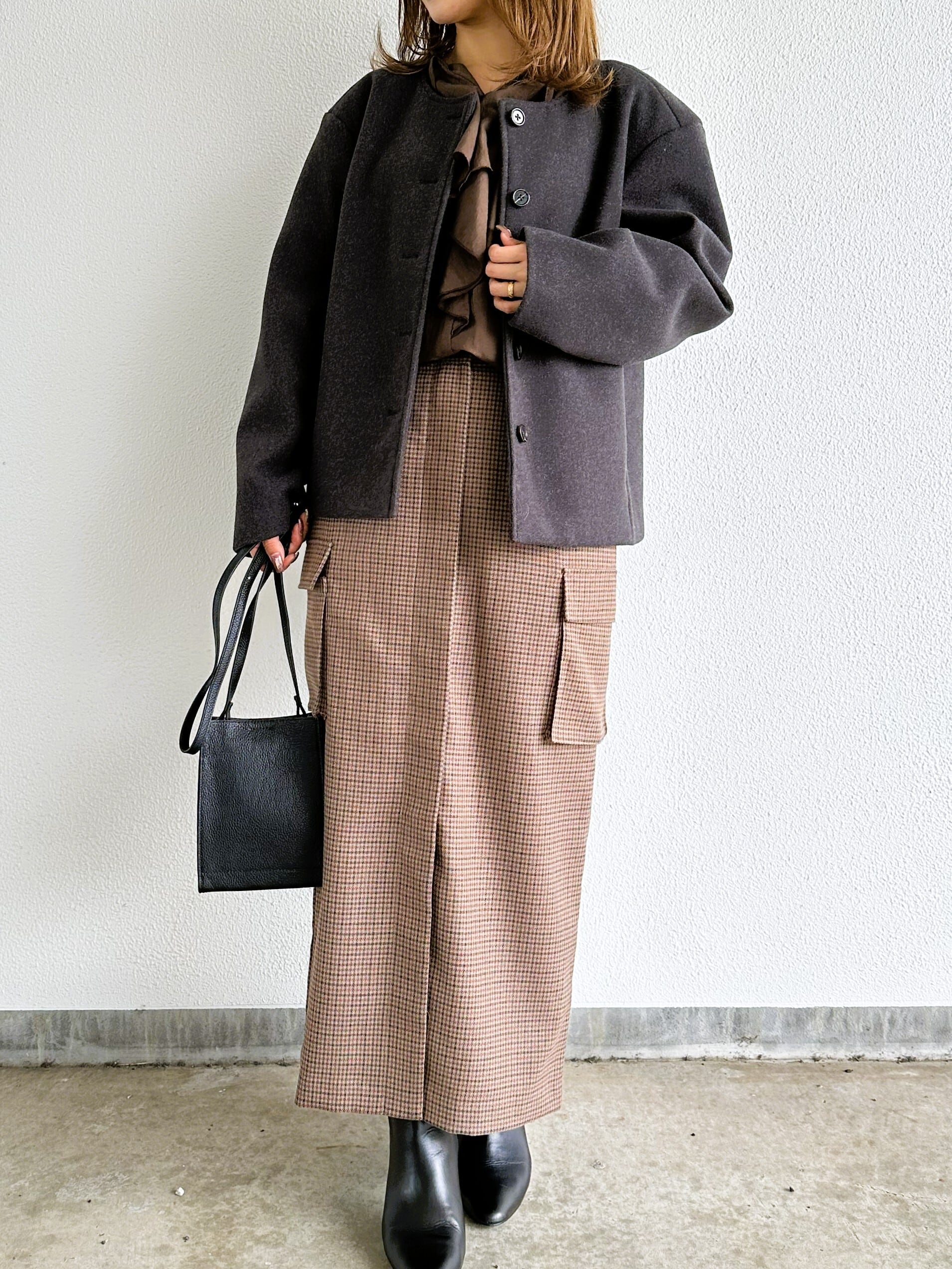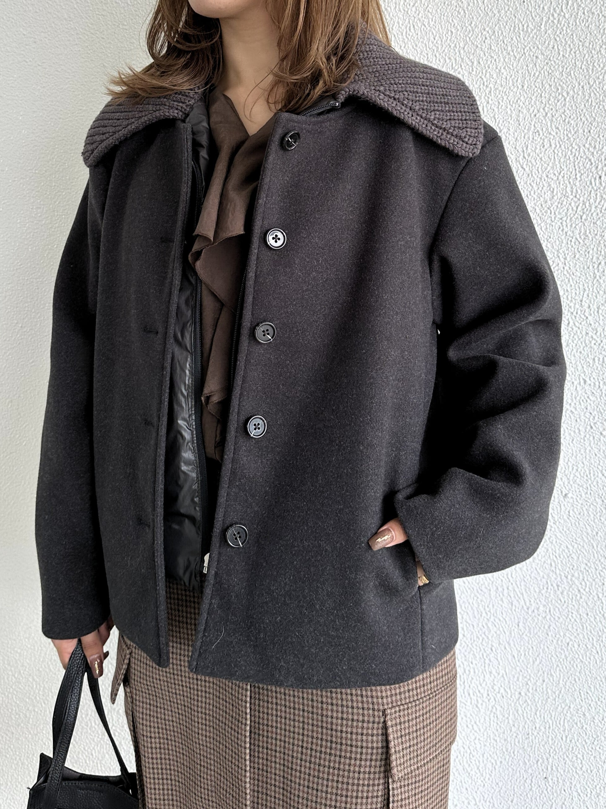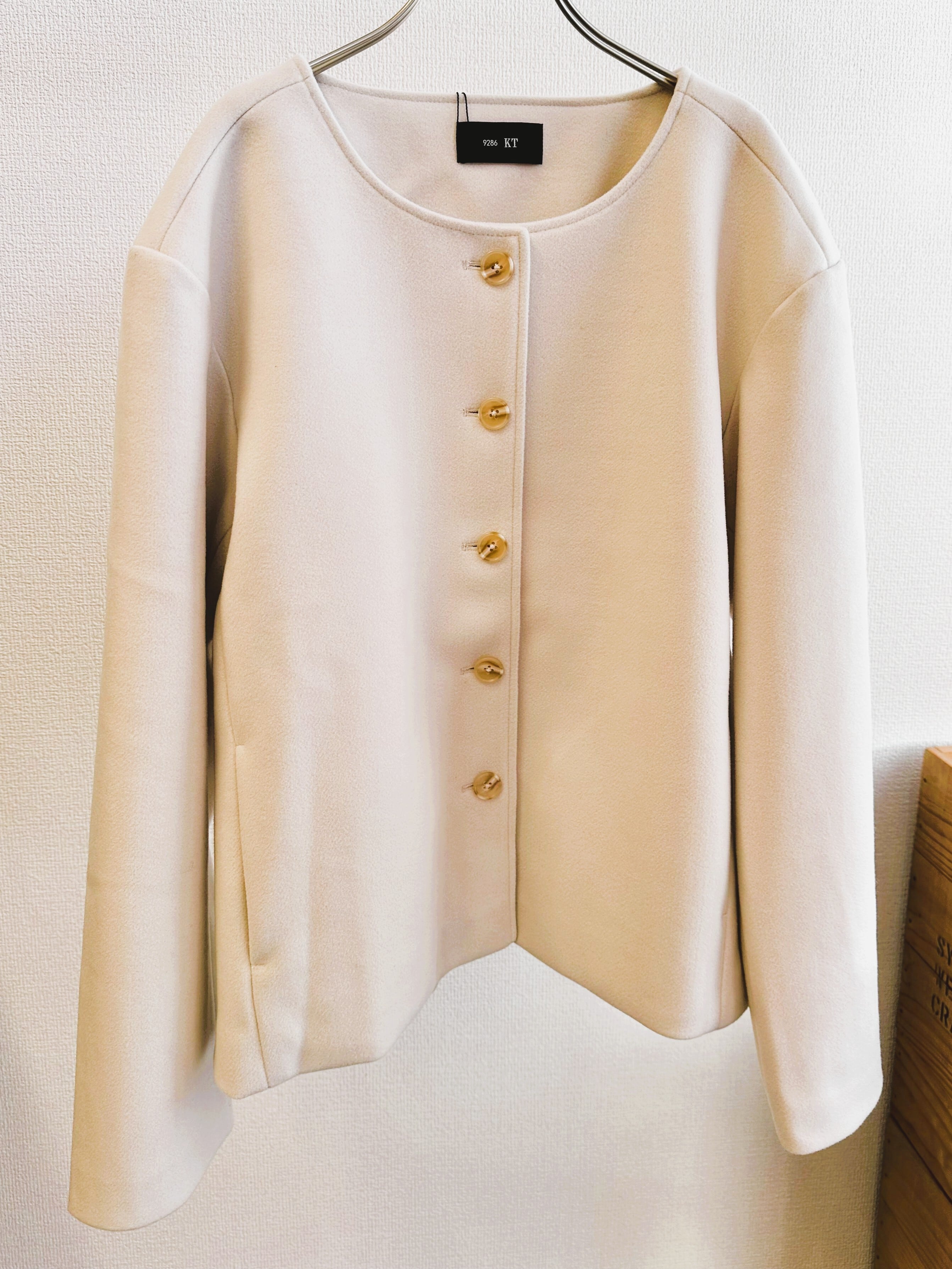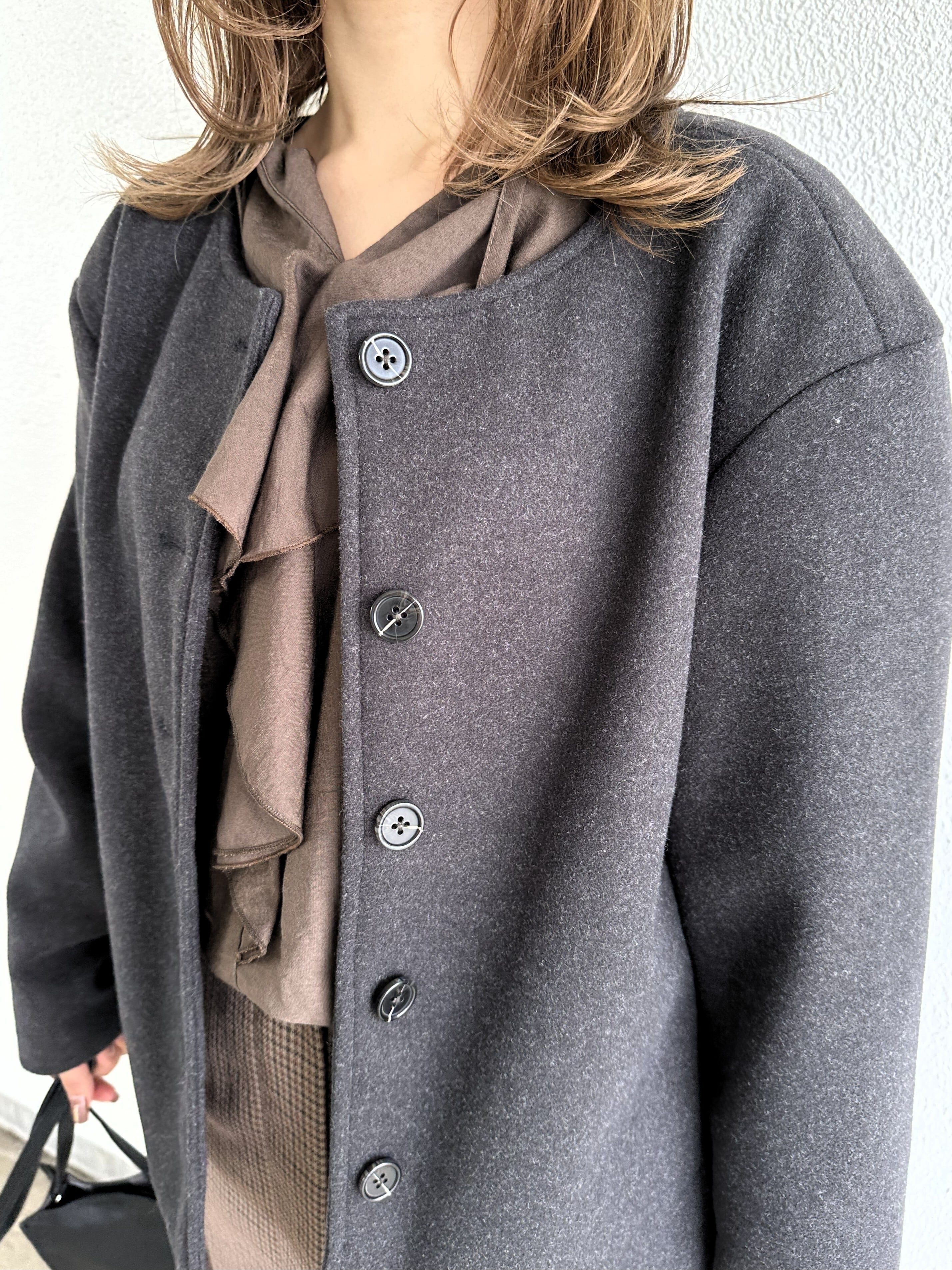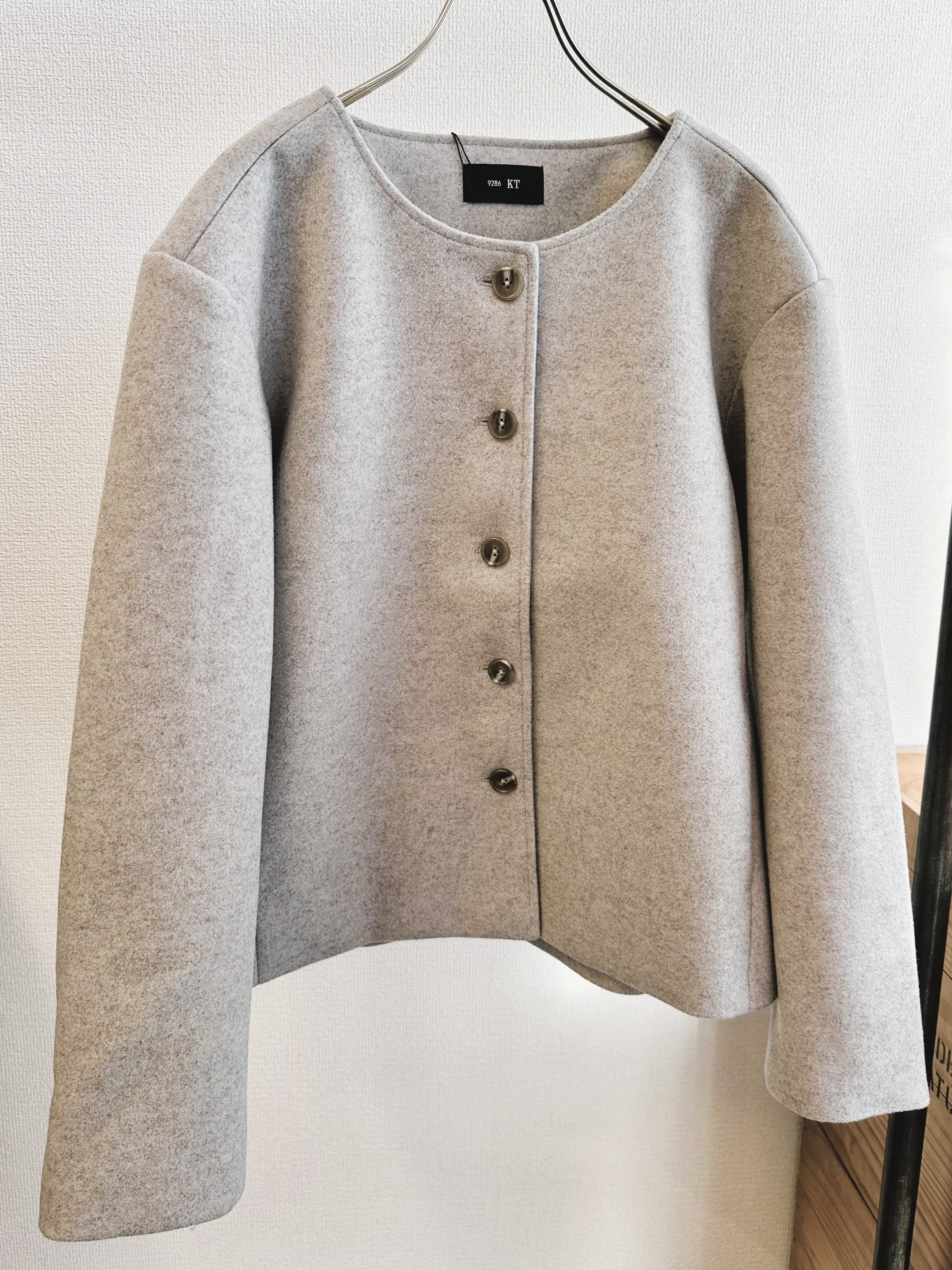 デイリーに使えるウールライクメルトンノーカラージャケット。