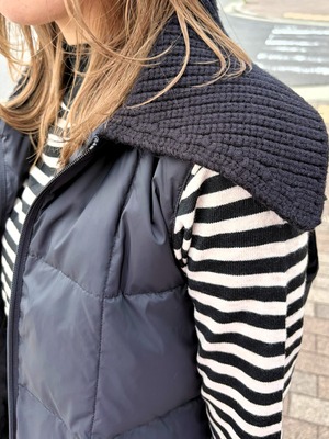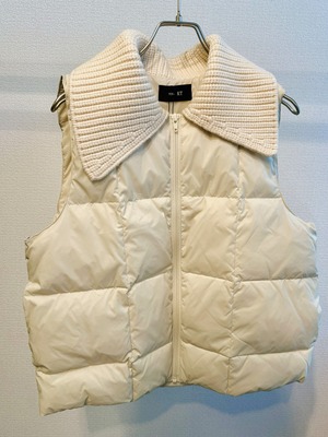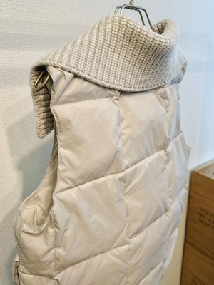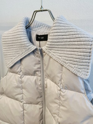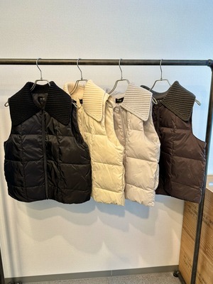 編み立て衿が暖かく華やかな印象のダウンベスト。