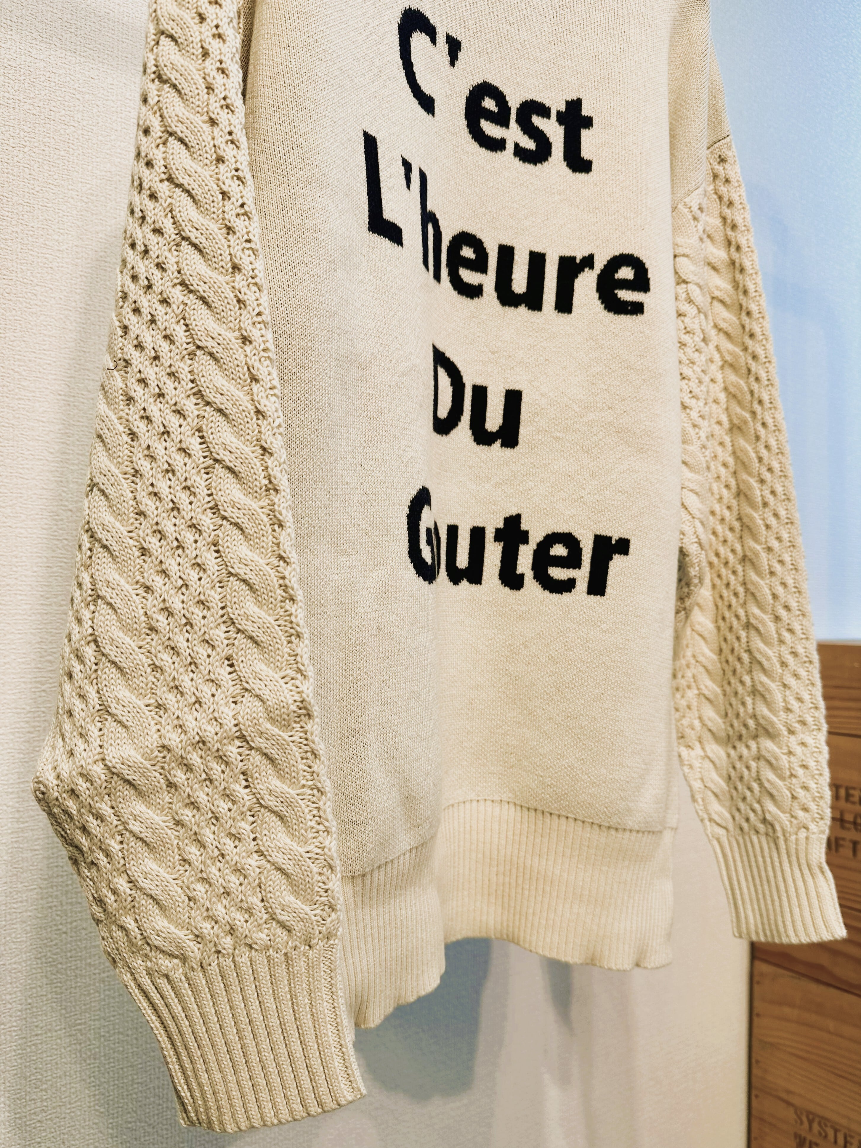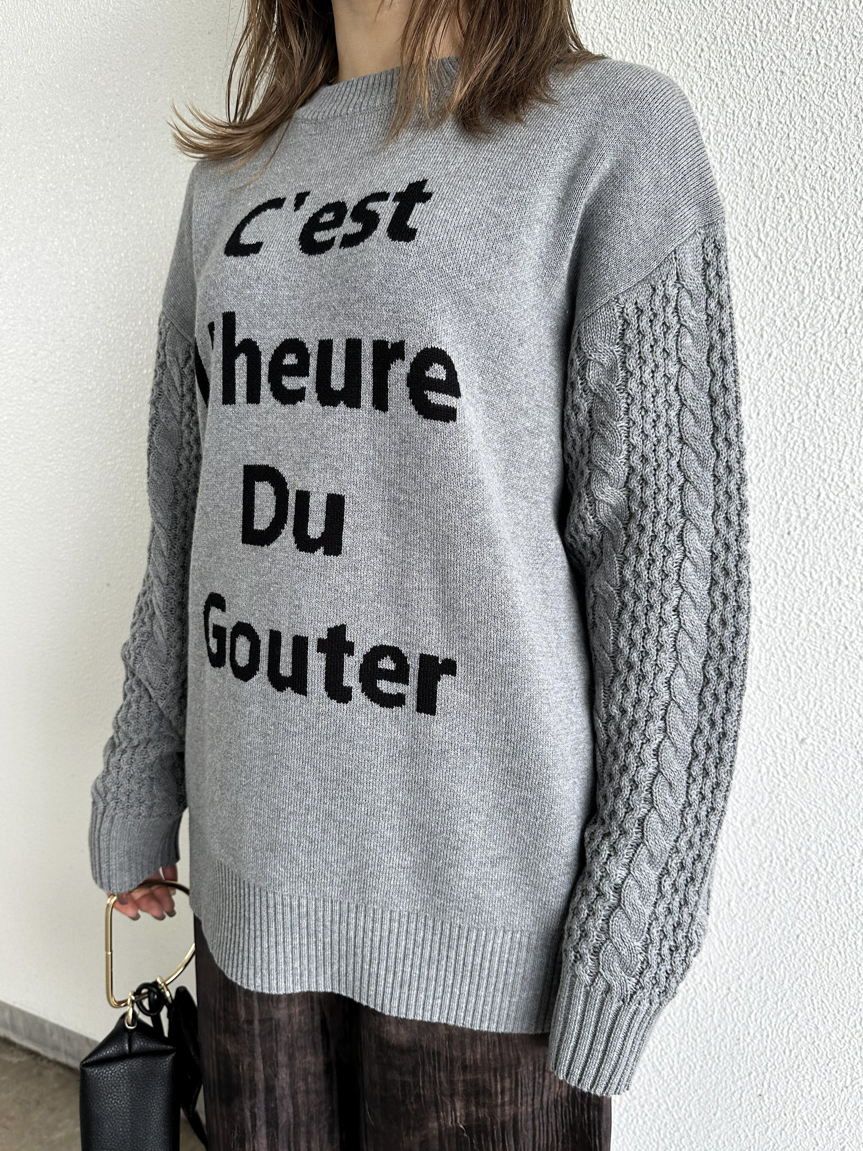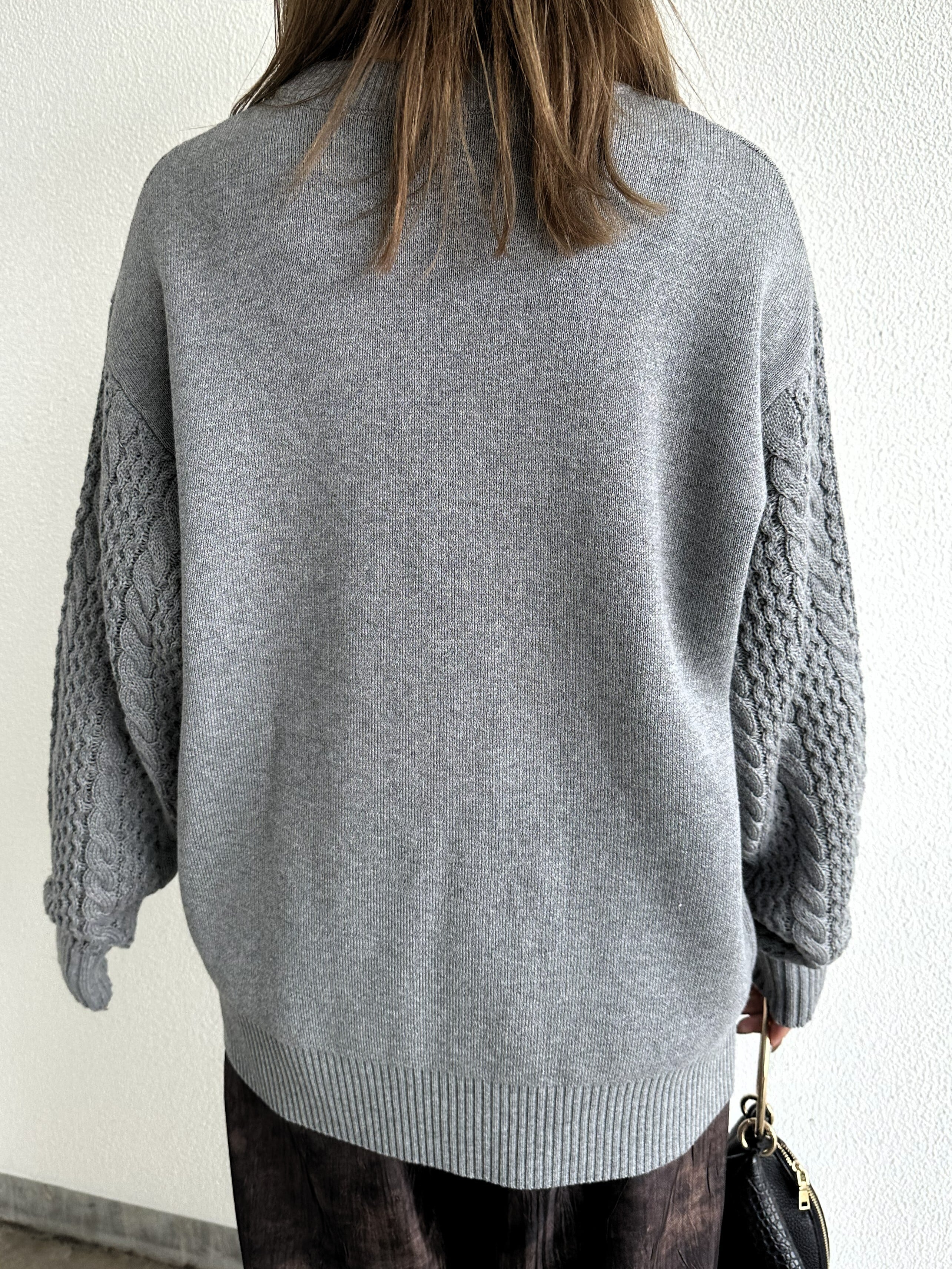 立体感のある袖のケーブル編もポイント。