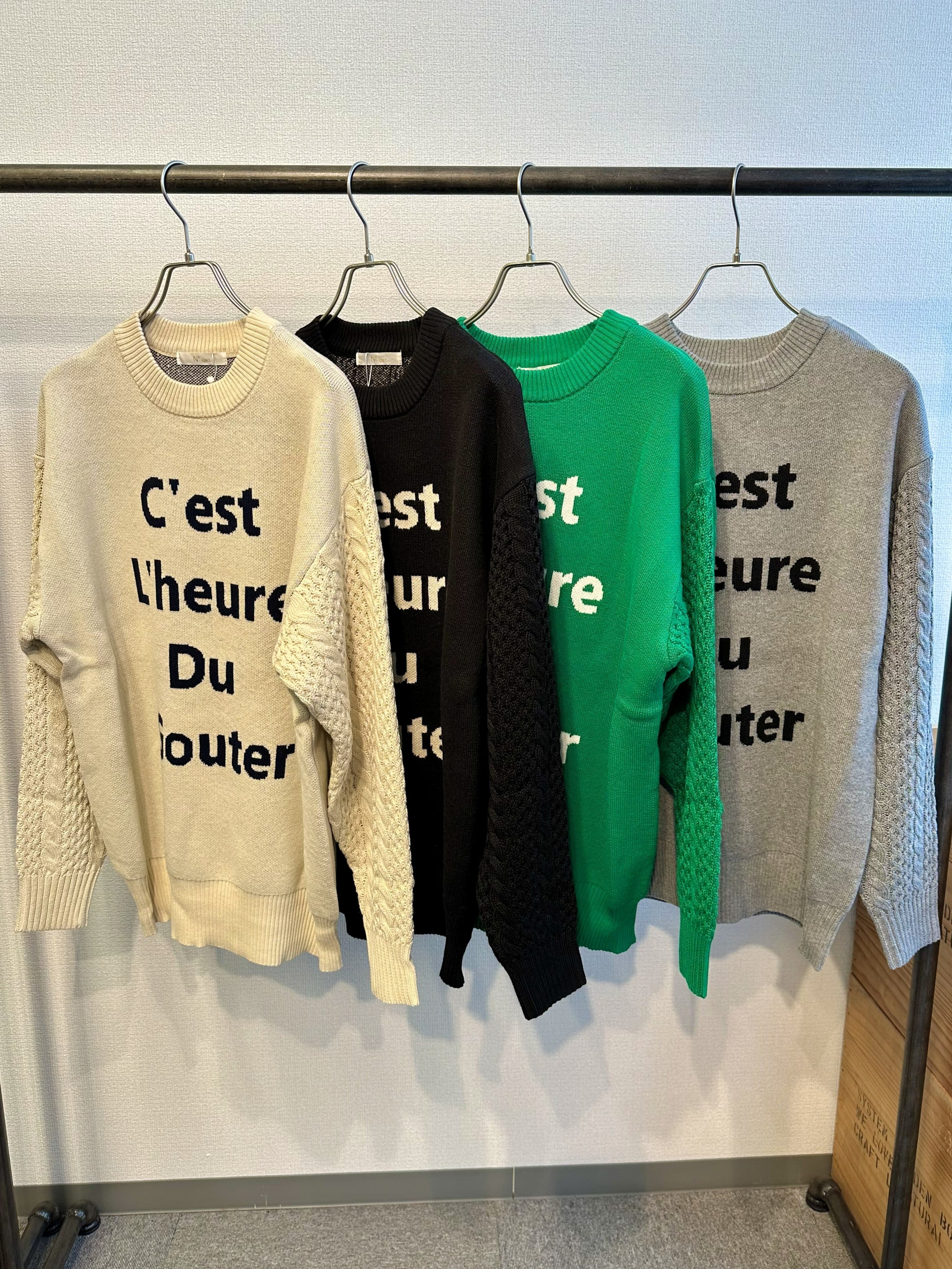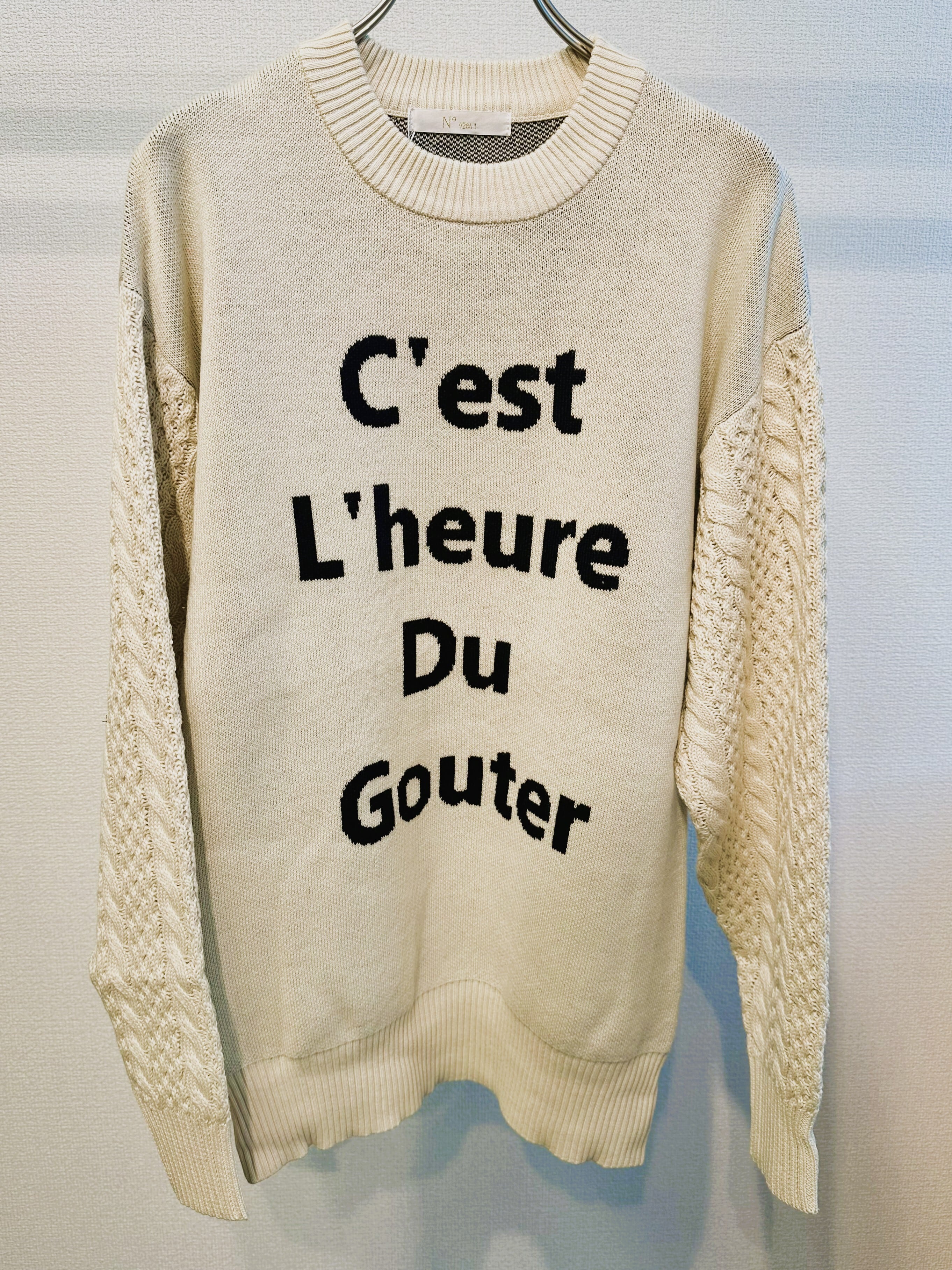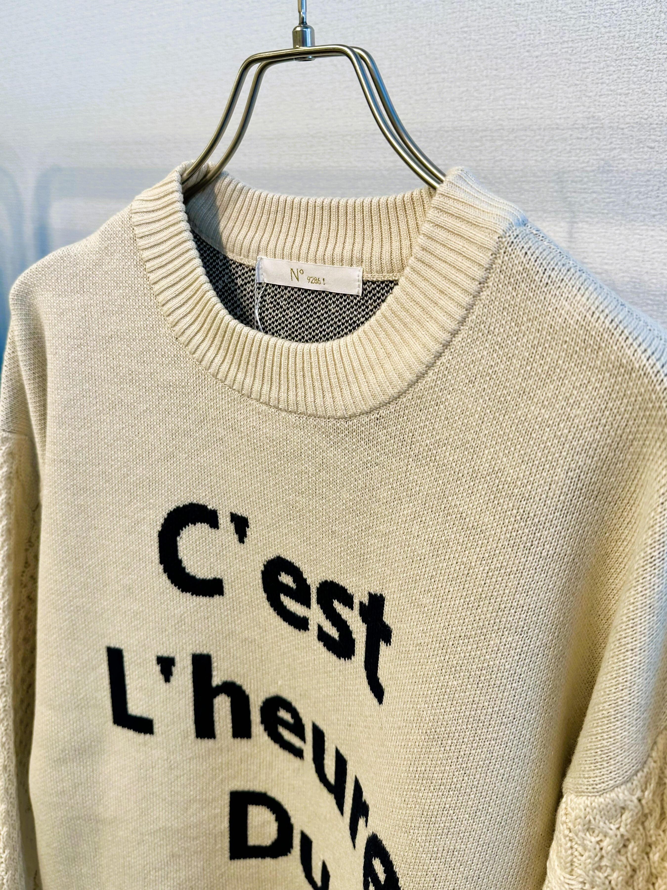 ロゴを表現したニットプルオーバー。