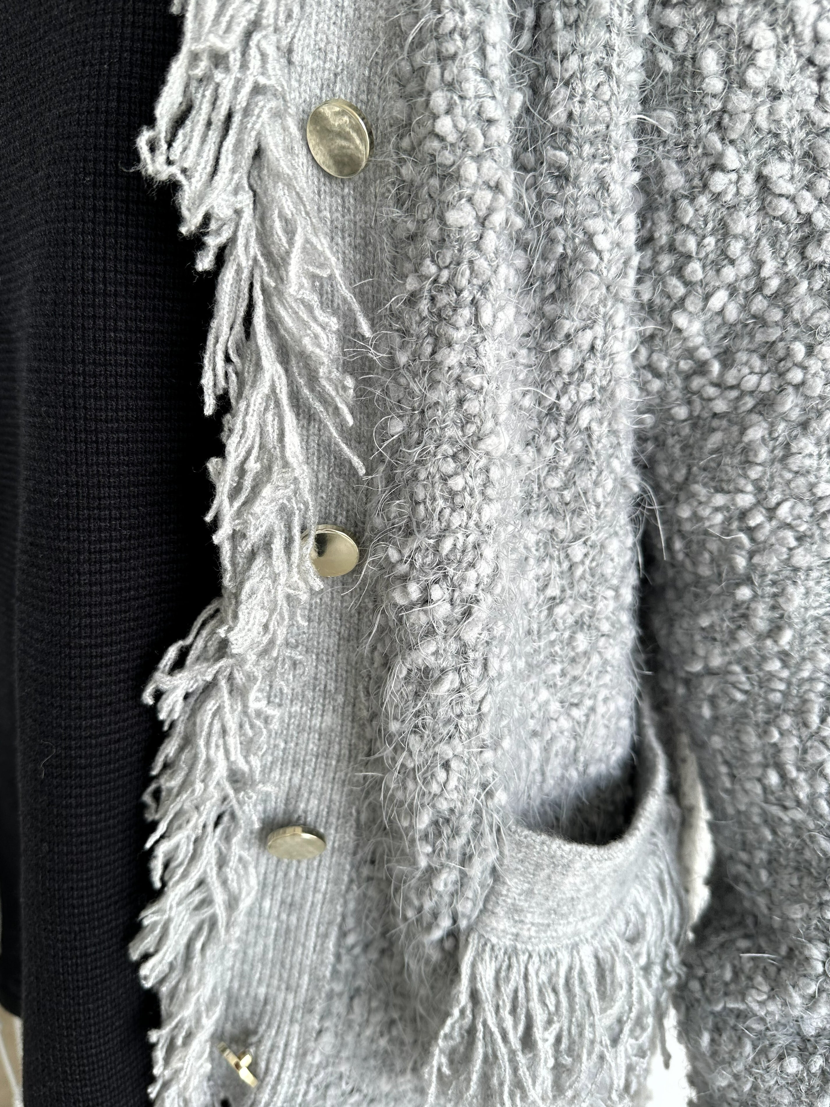 フリンジディテールが印象的なカーディガン。