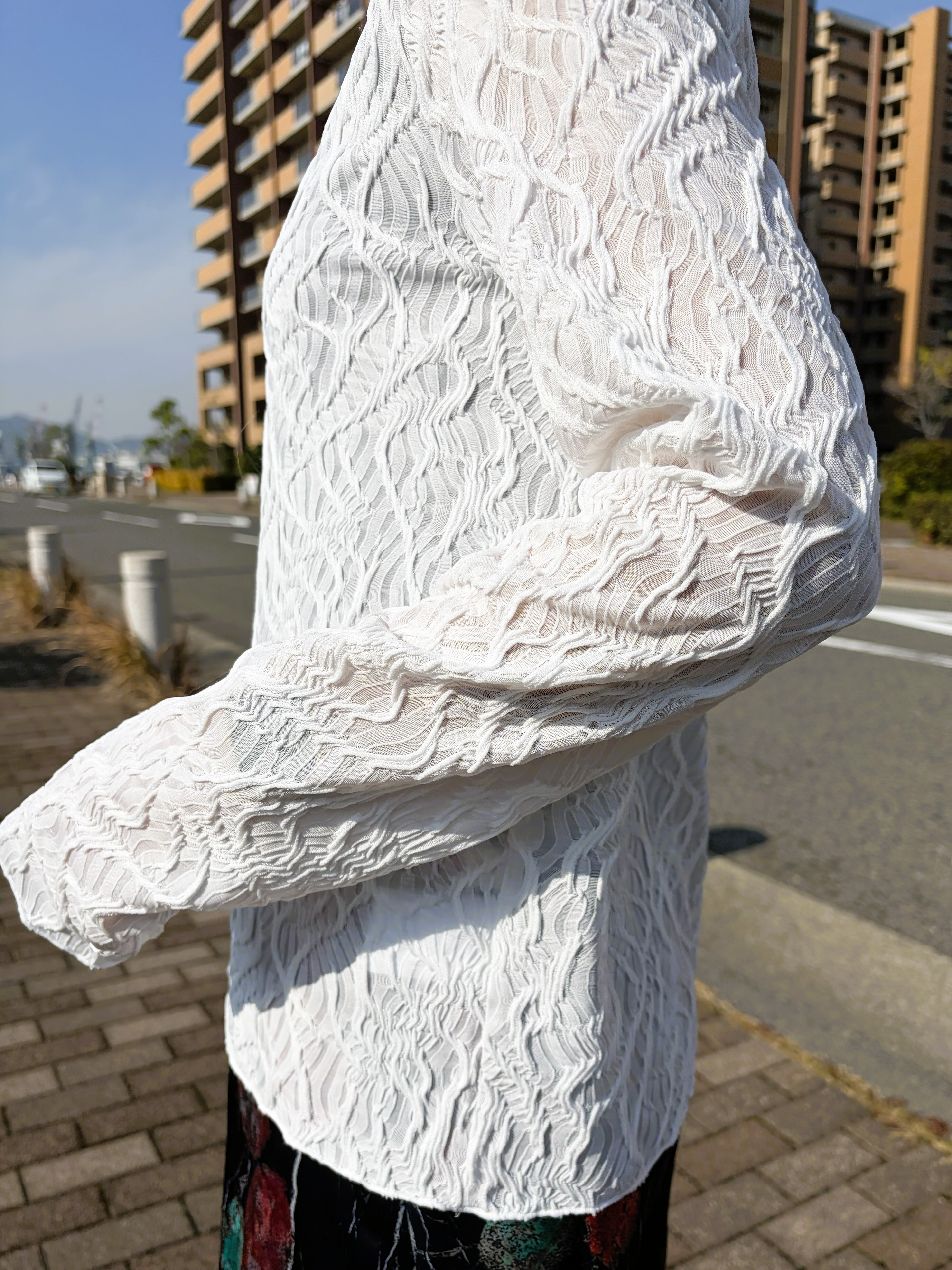 表情豊かなジャガードウェーブがポイントの万能トップス。