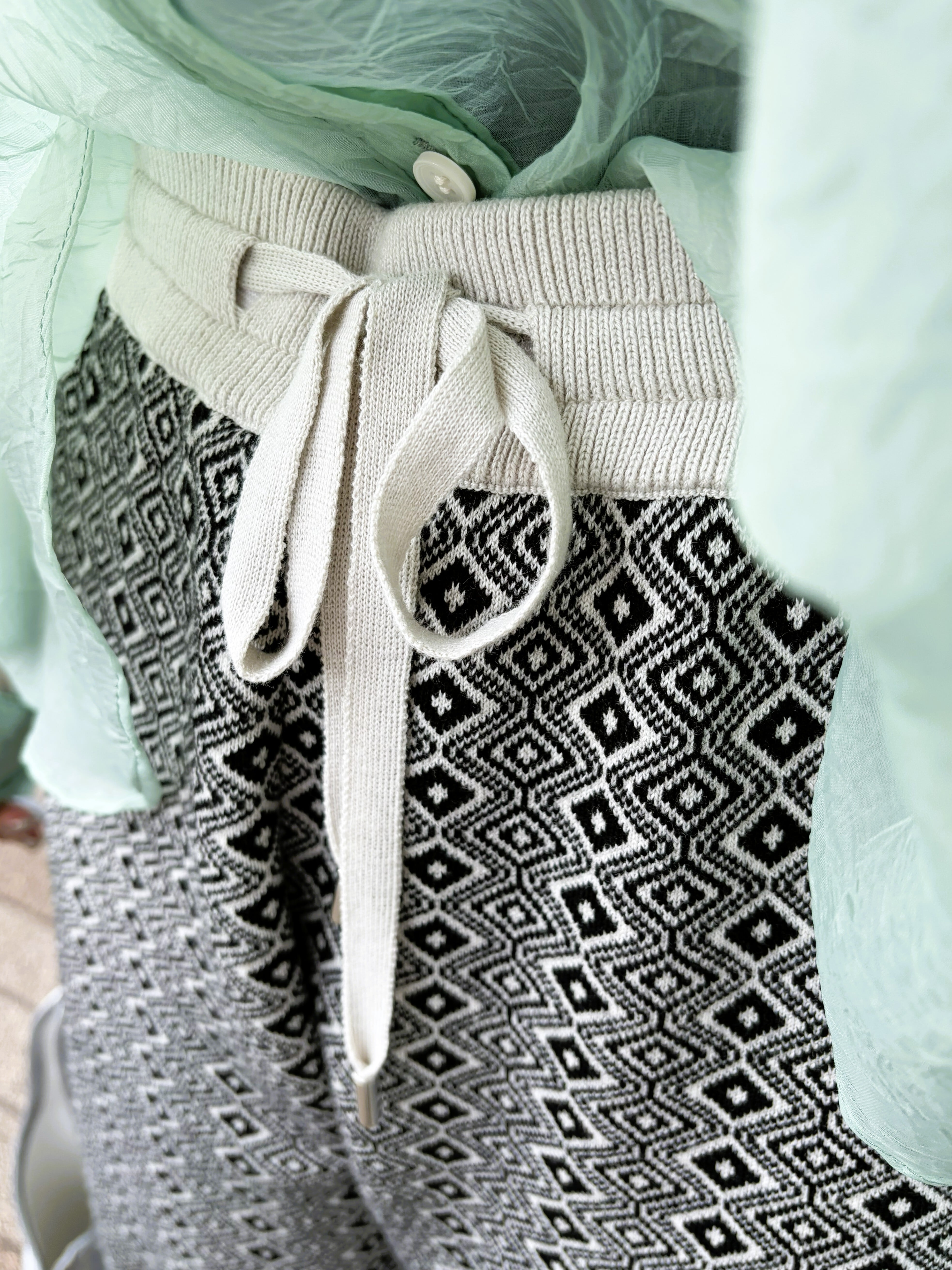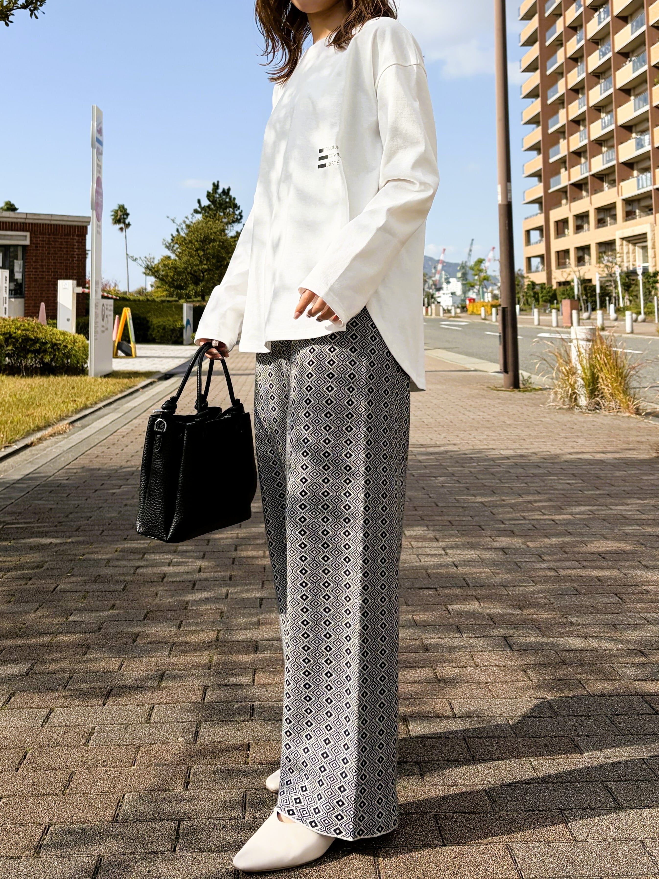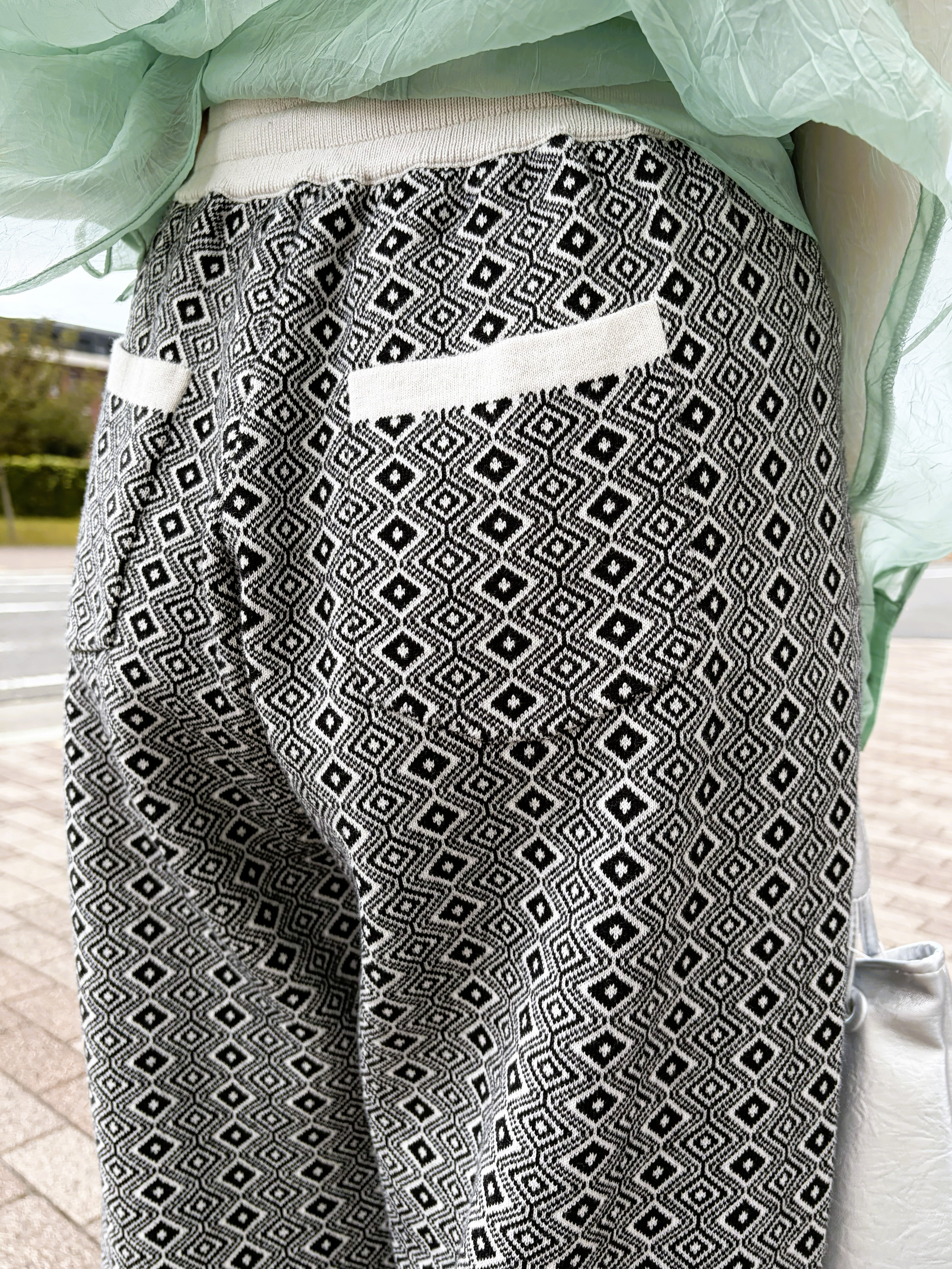 トレンド感たっぷりな幾何ジャガードパンツ。