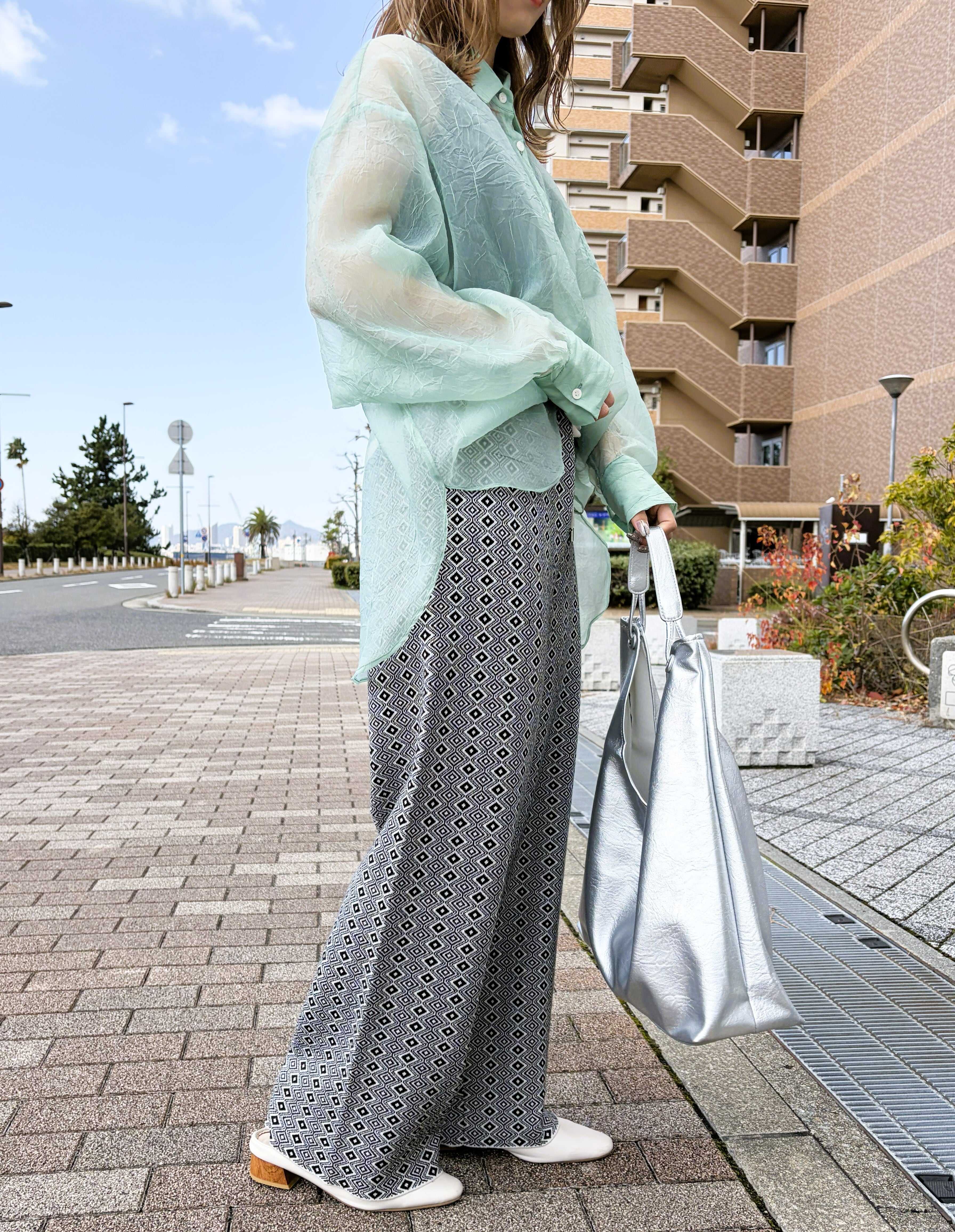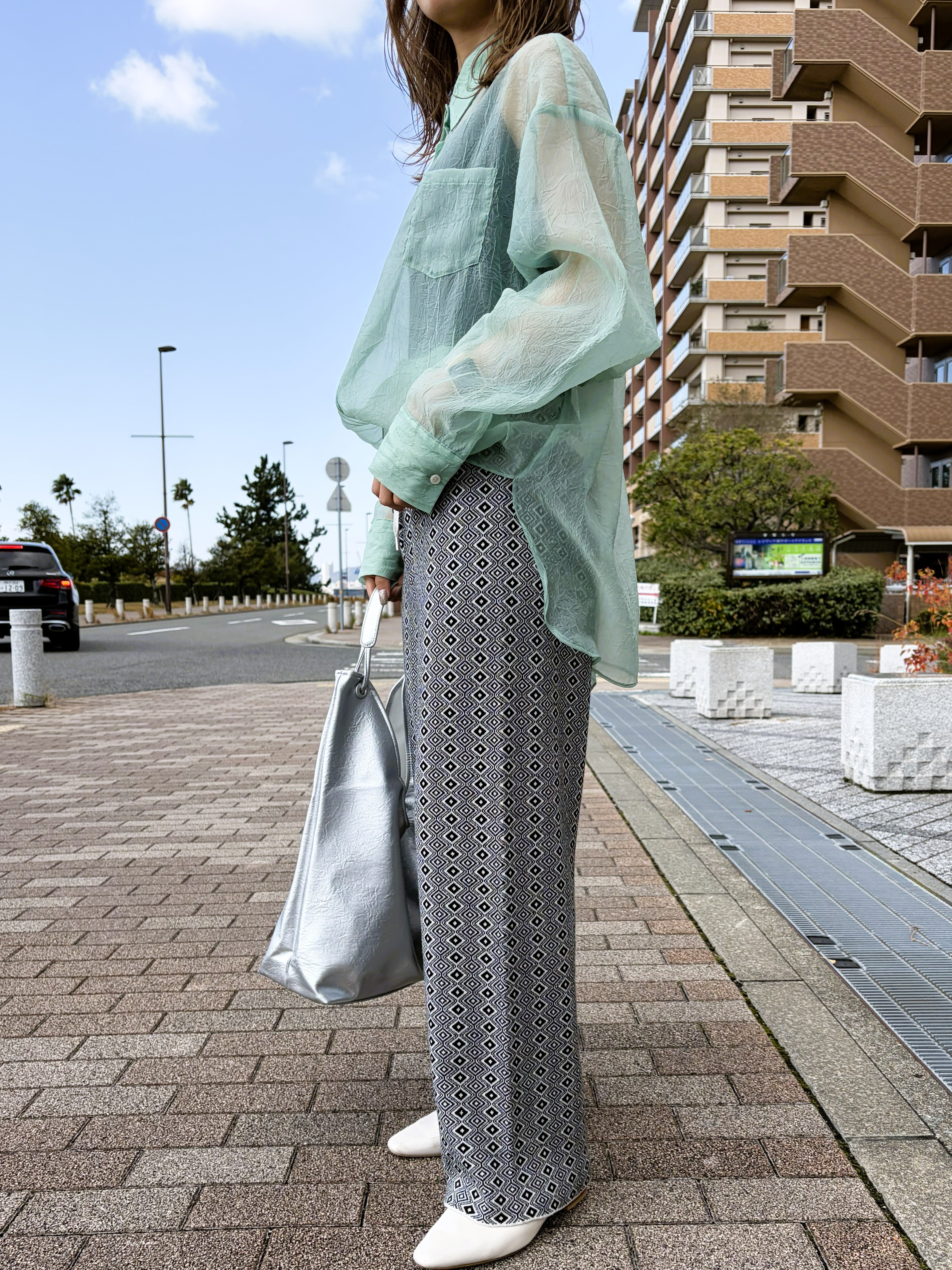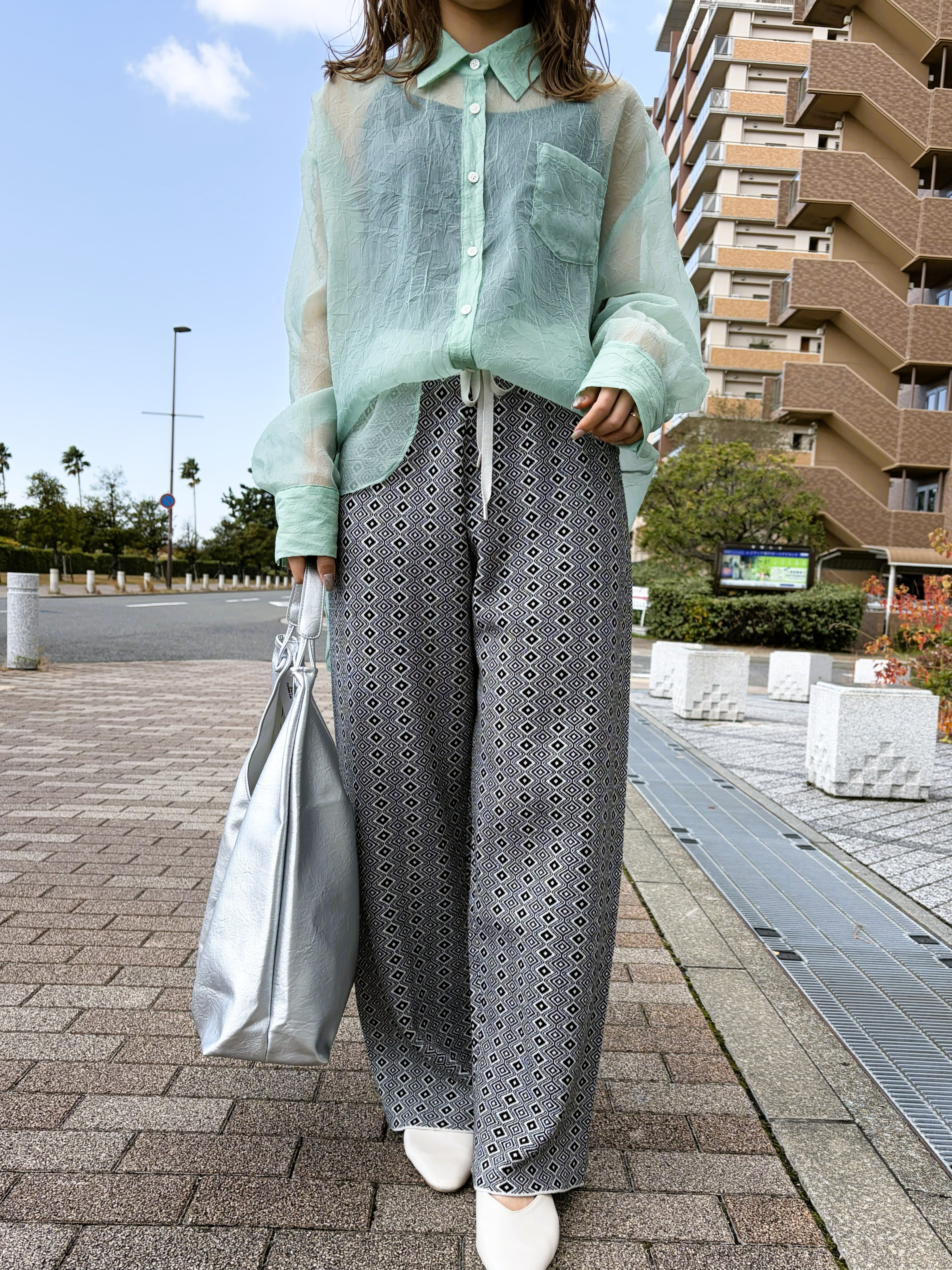 トレンド感たっぷりな幾何ジャガードパンツ。