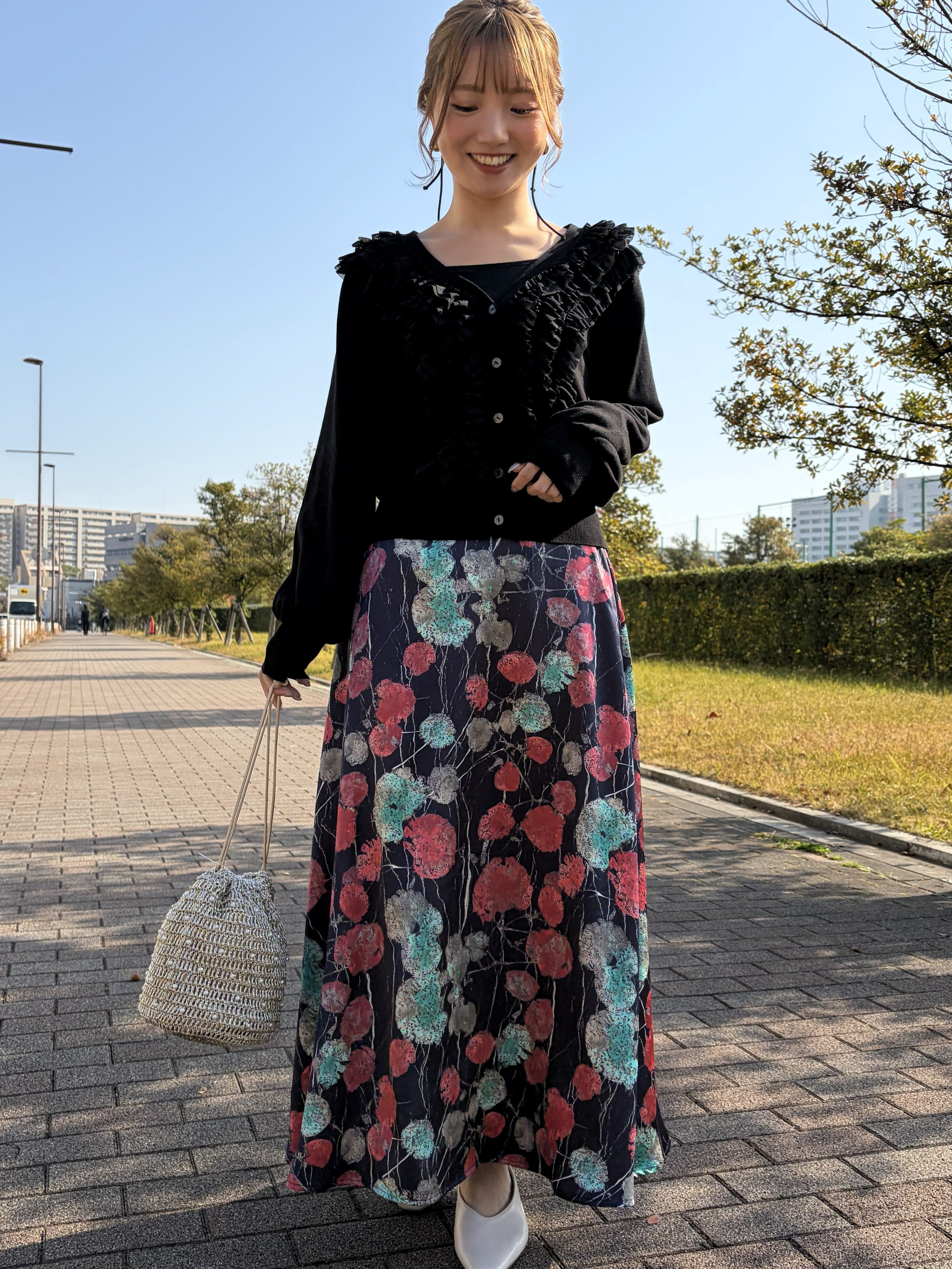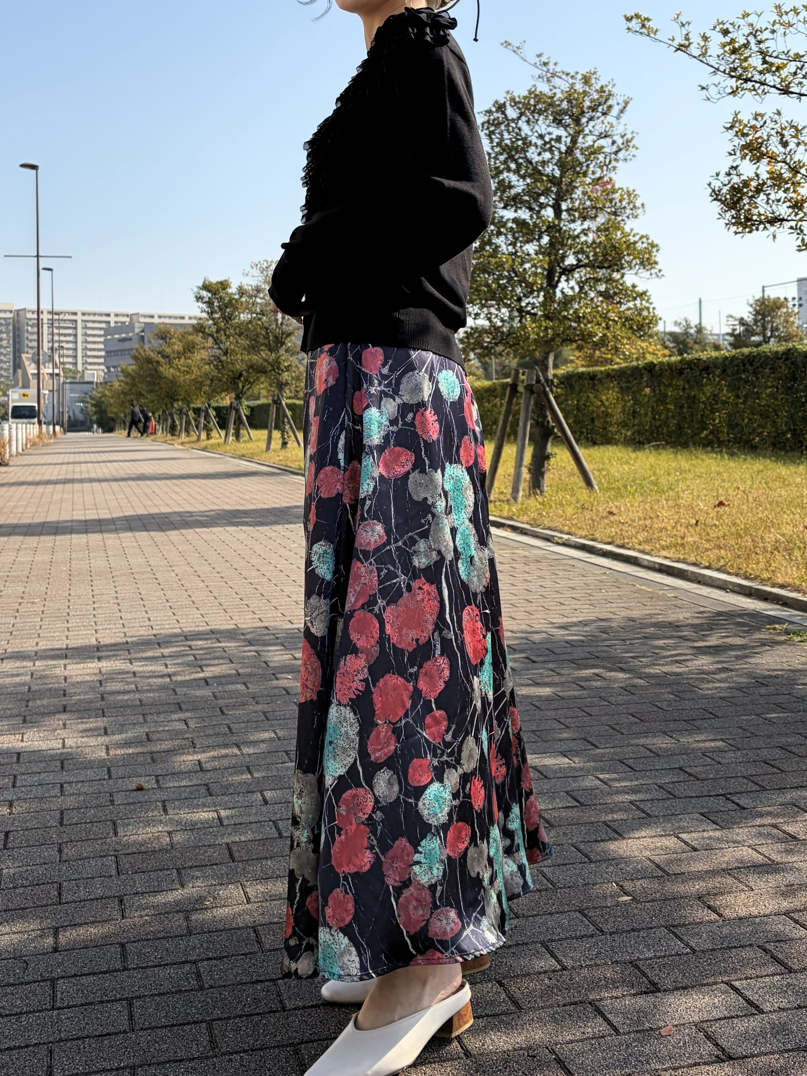 大人のフラワープリントスカートです。