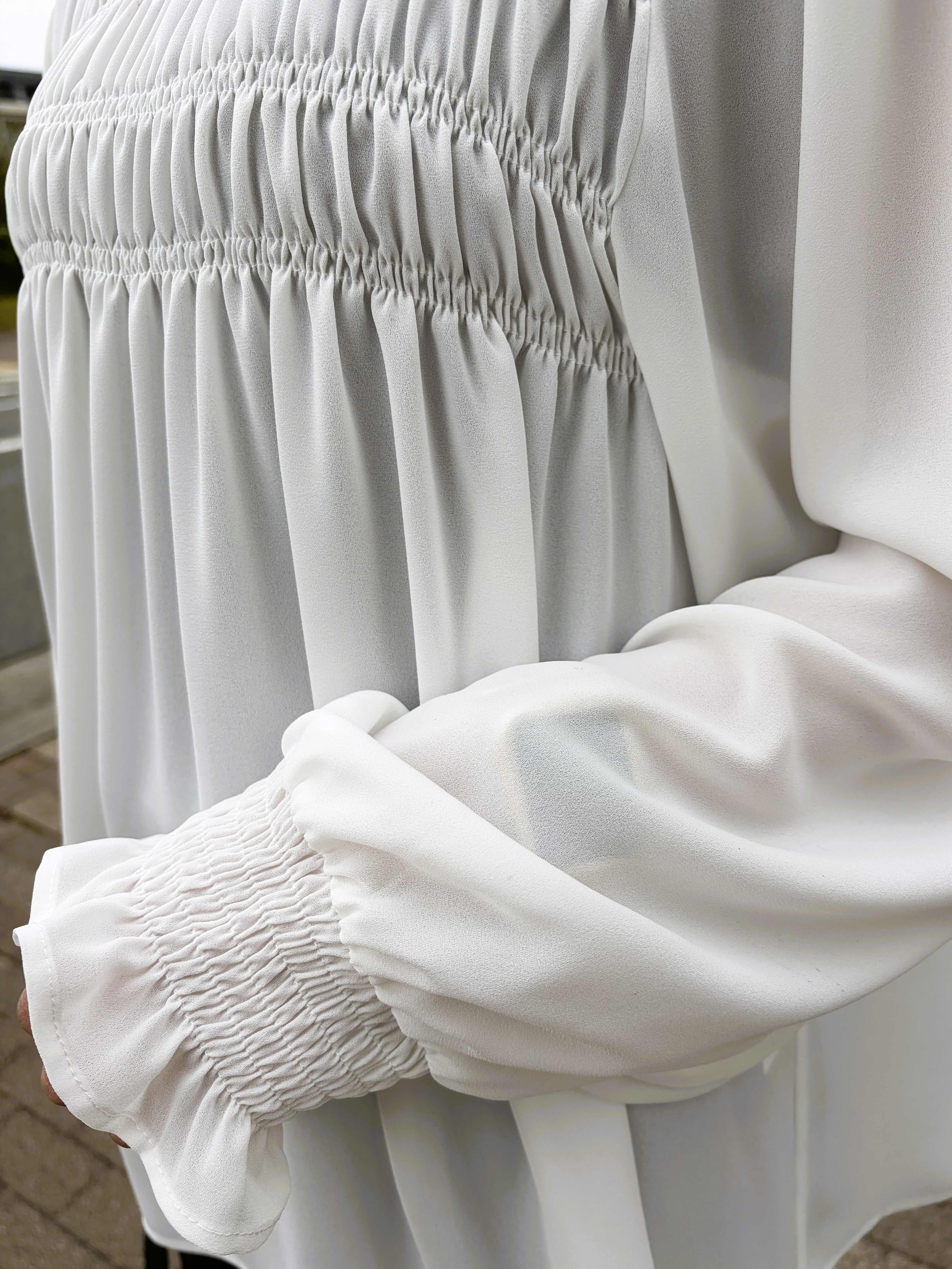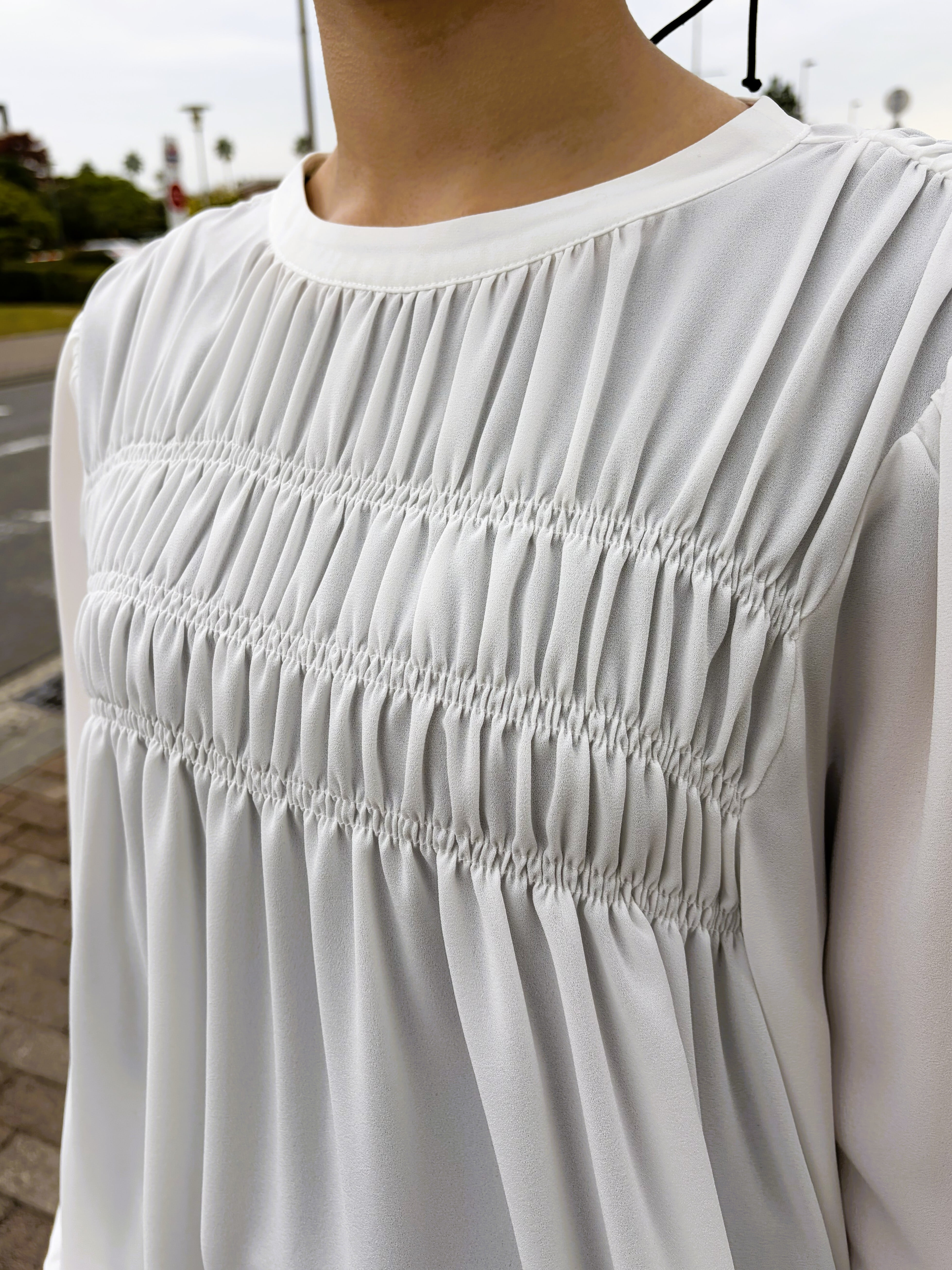 軽やかなシフォンの生地が女性らしさを引き立てる
