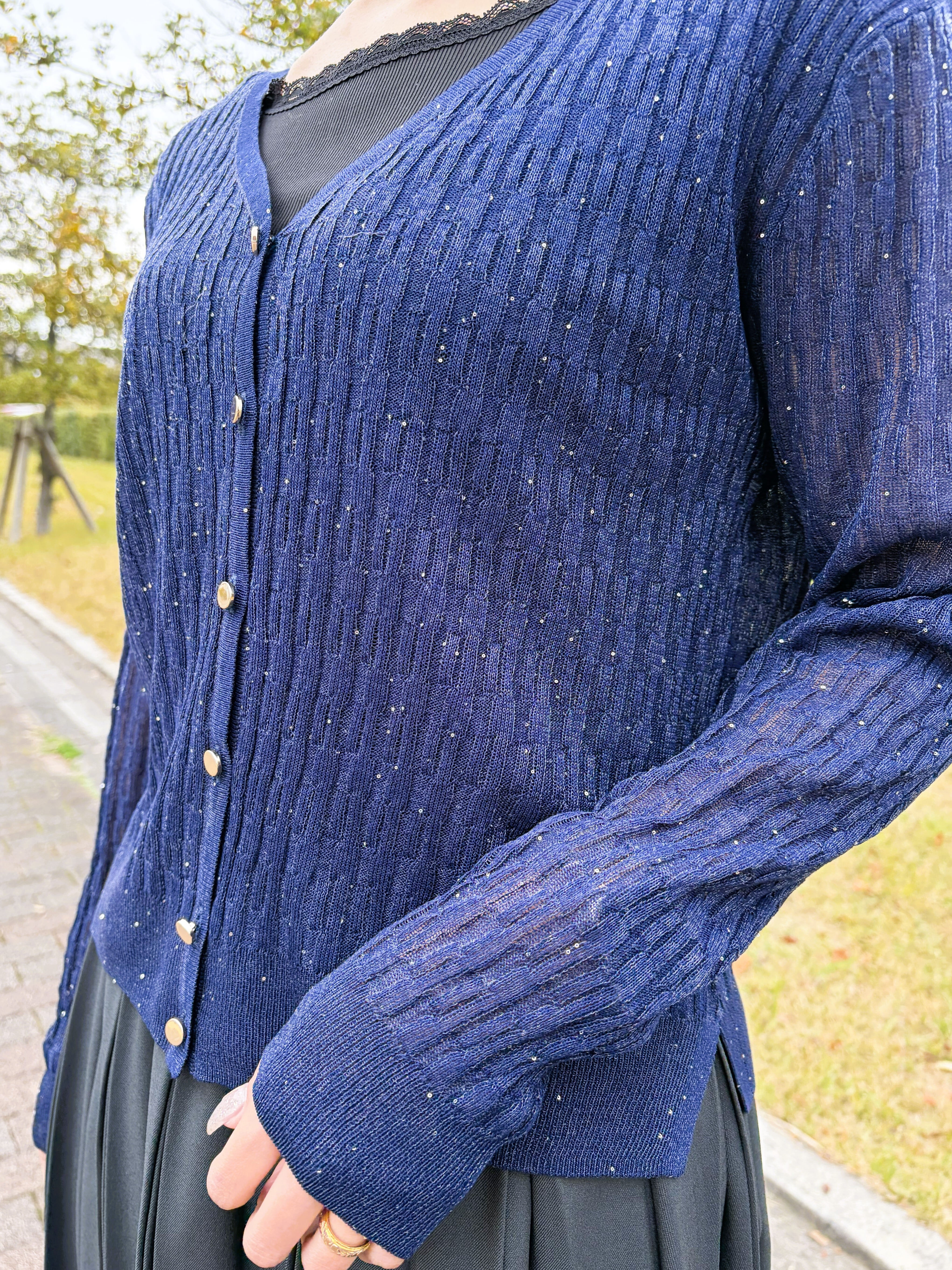 小さなスパンコールがさりげなく光る