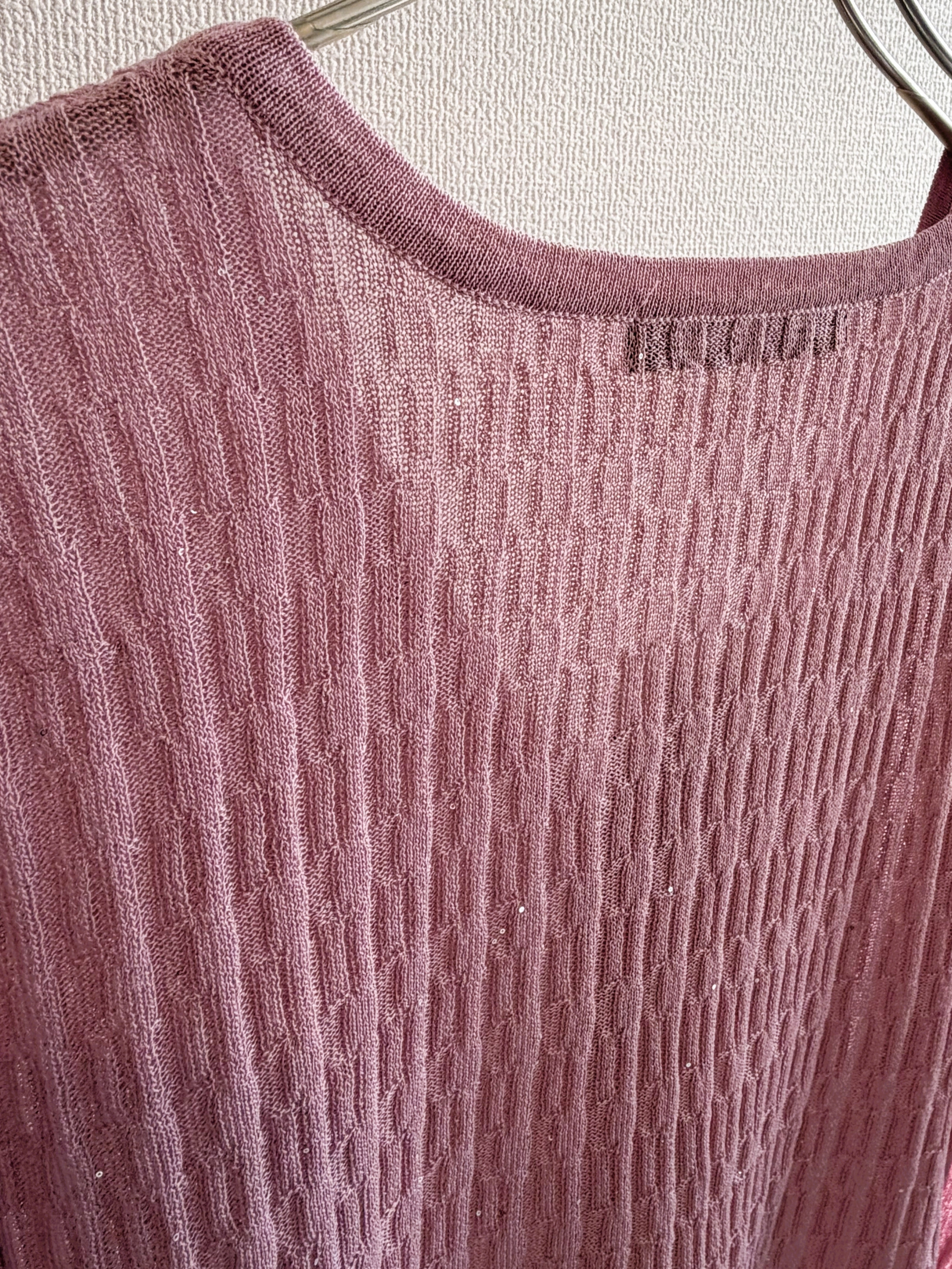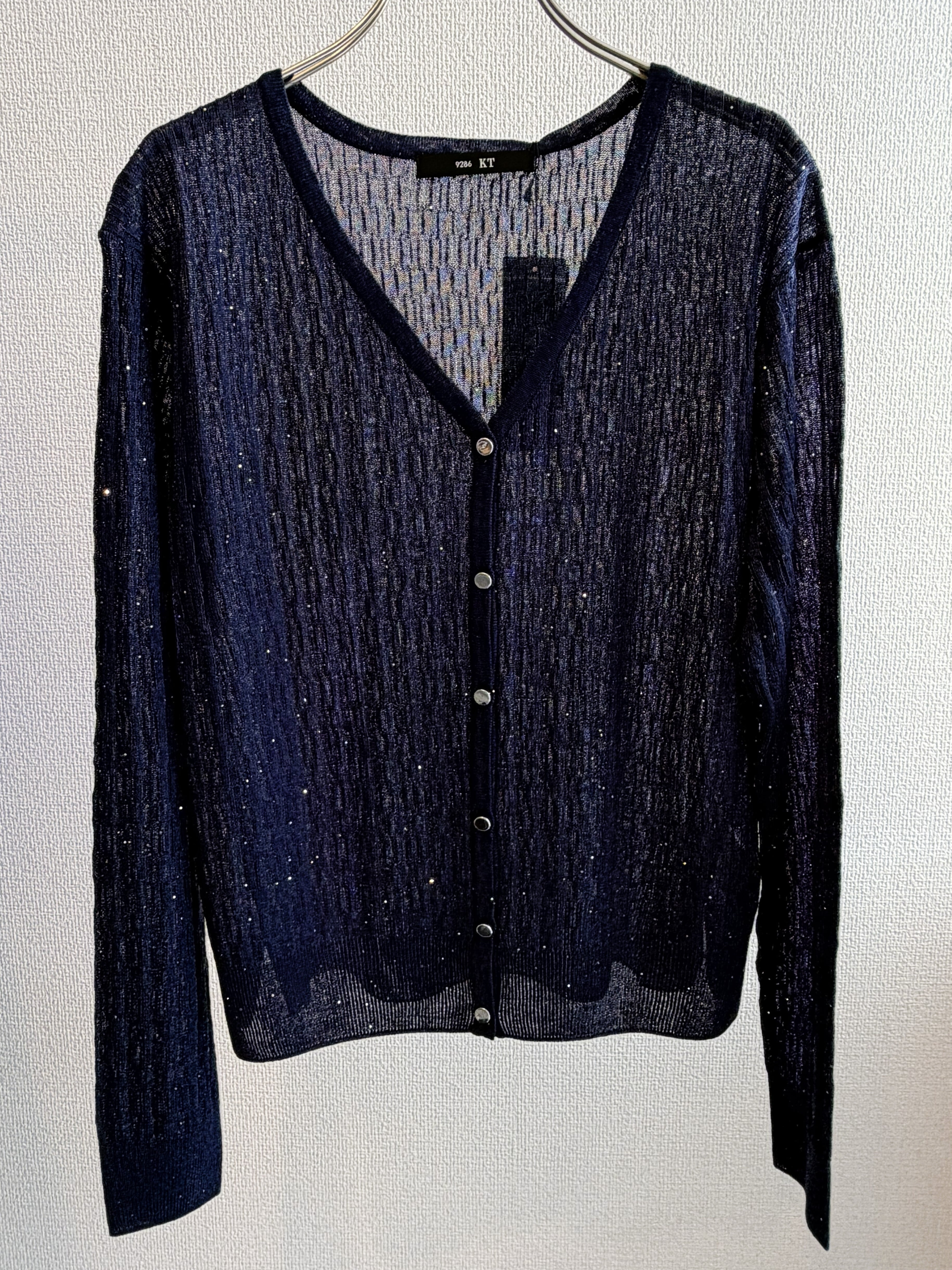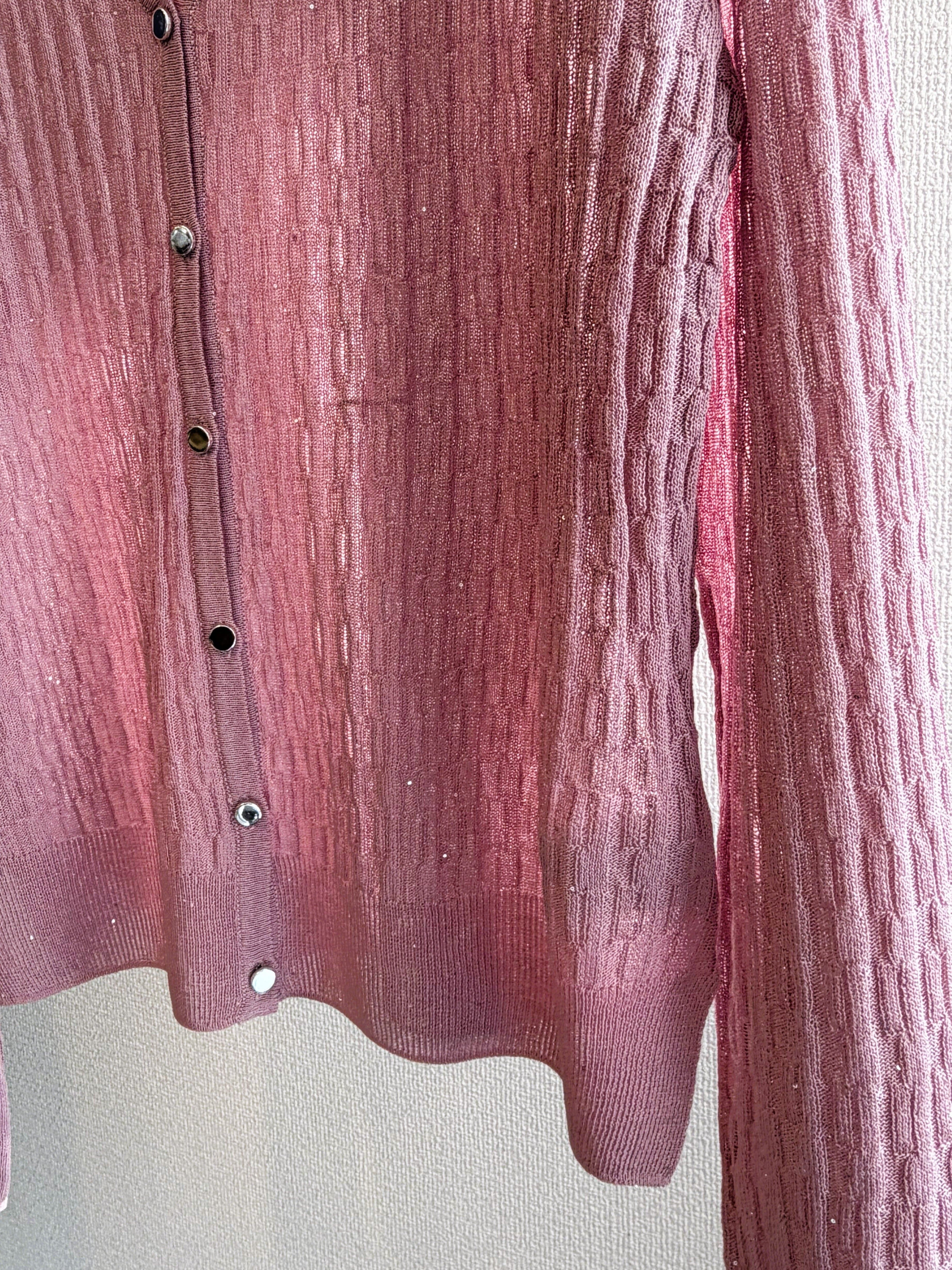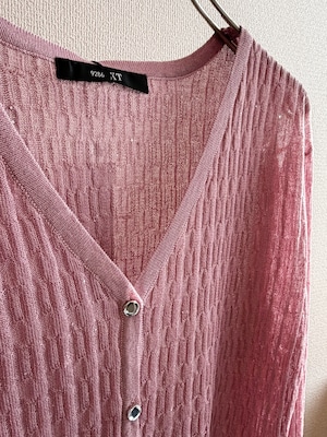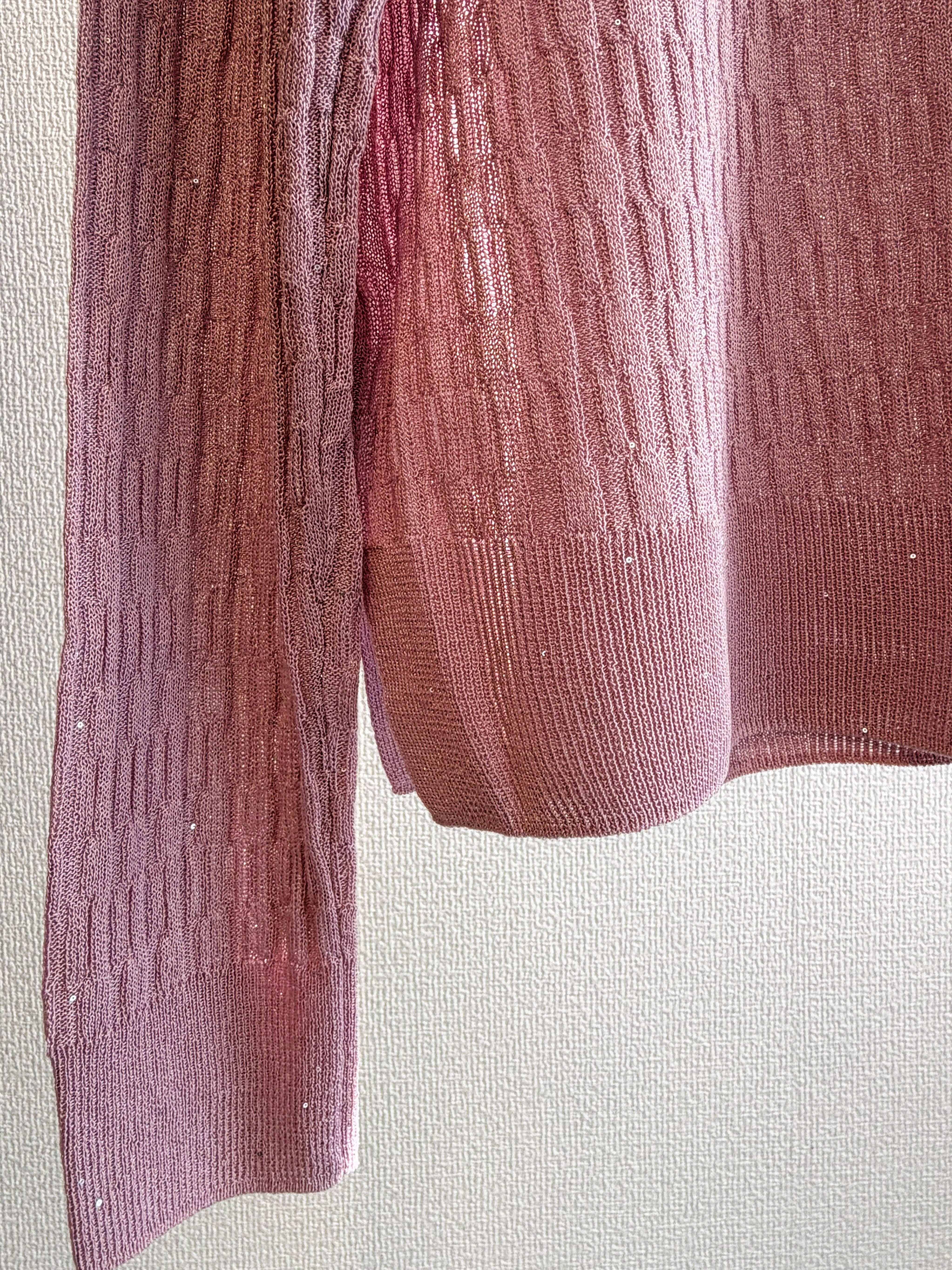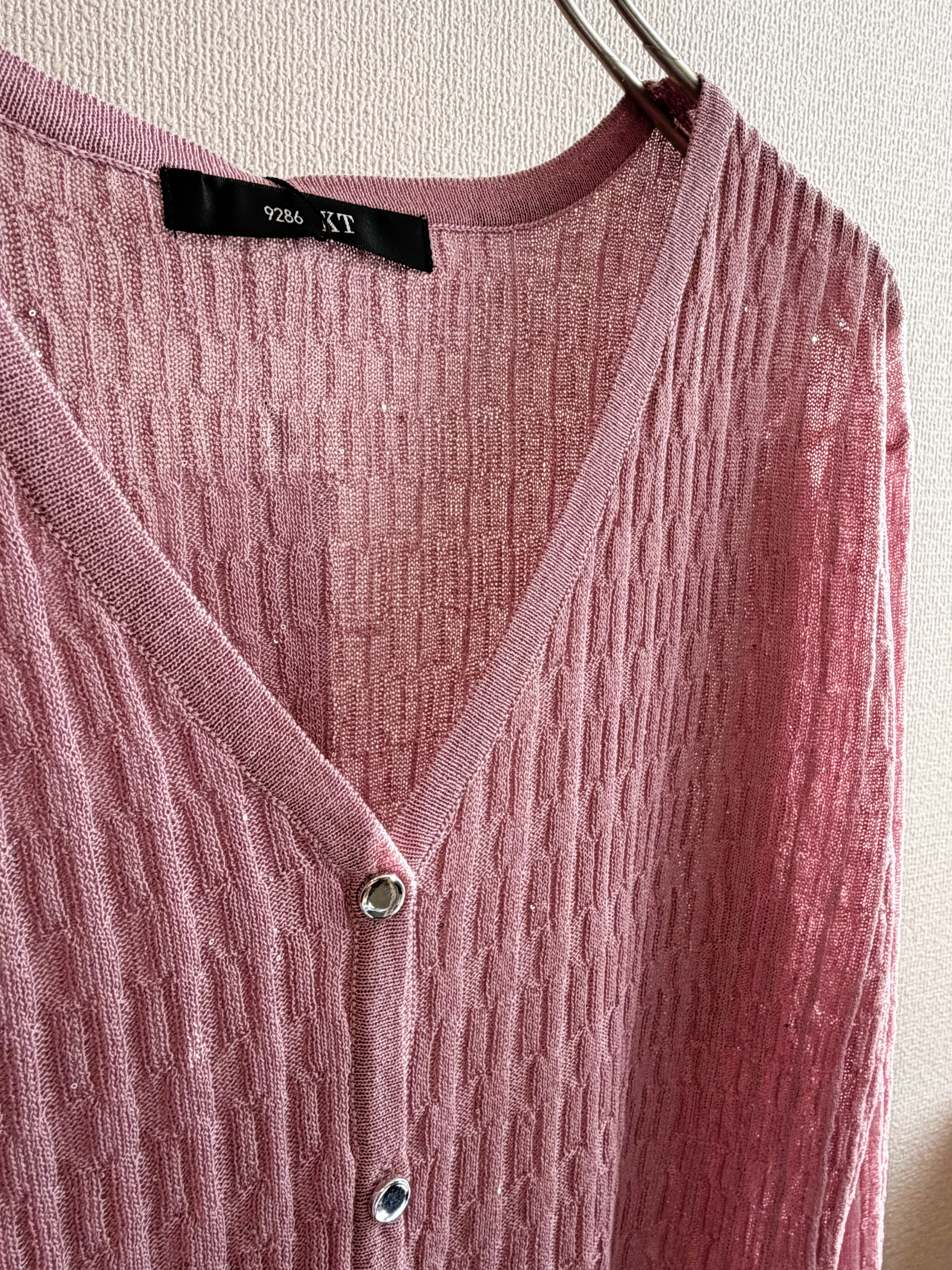 華やかなミニスパンコールイレギュラーリブプルカーディガン。