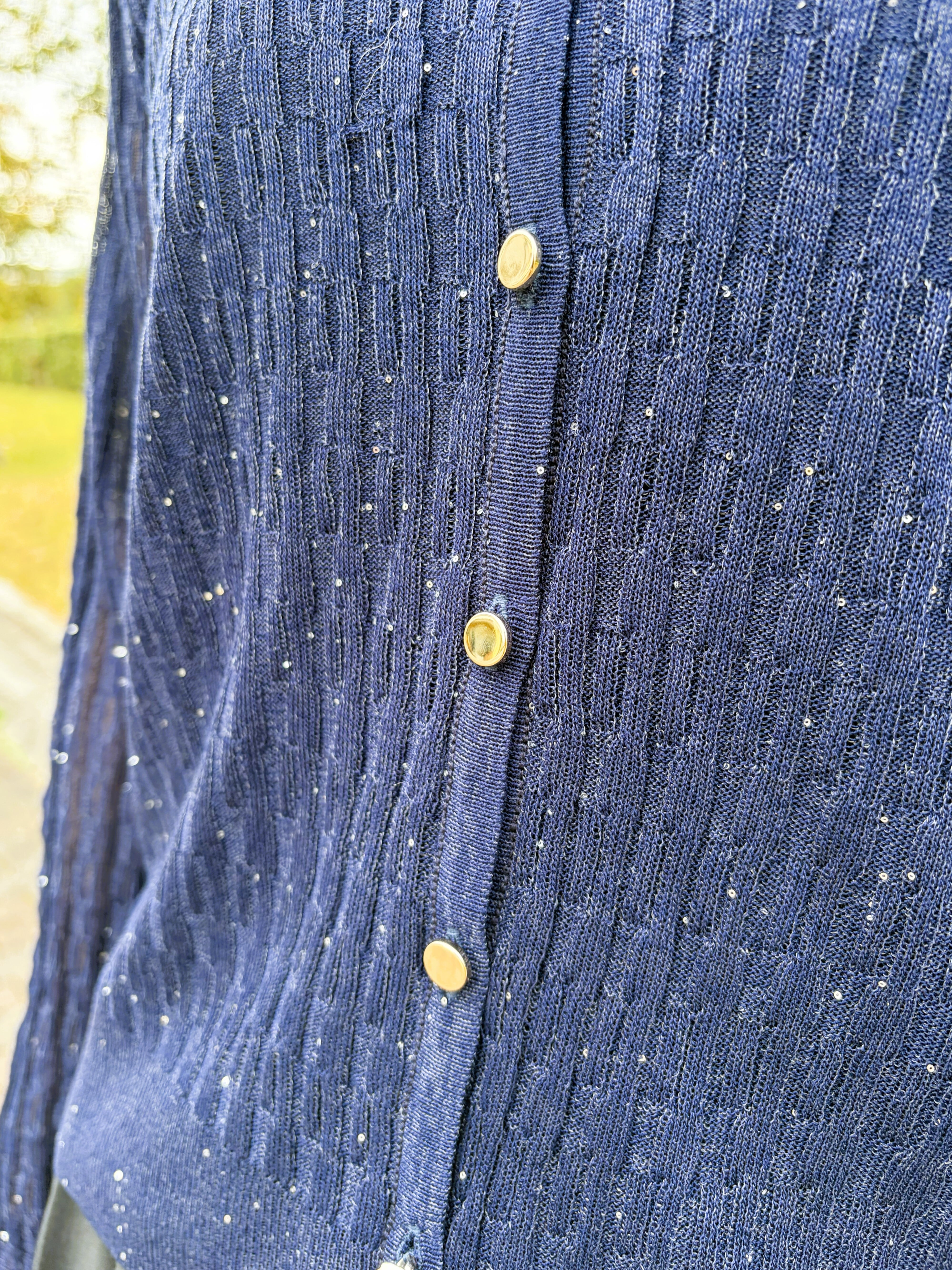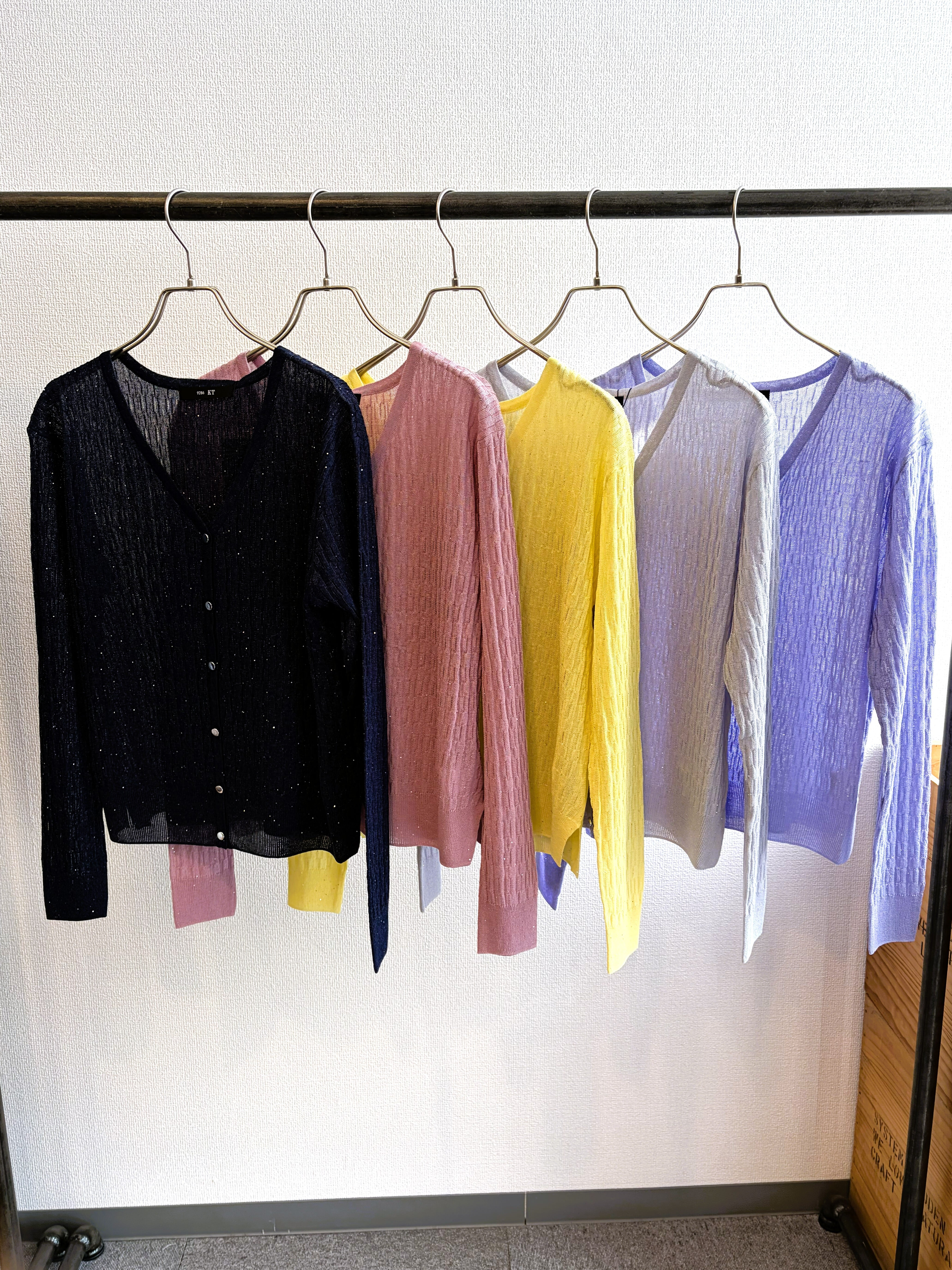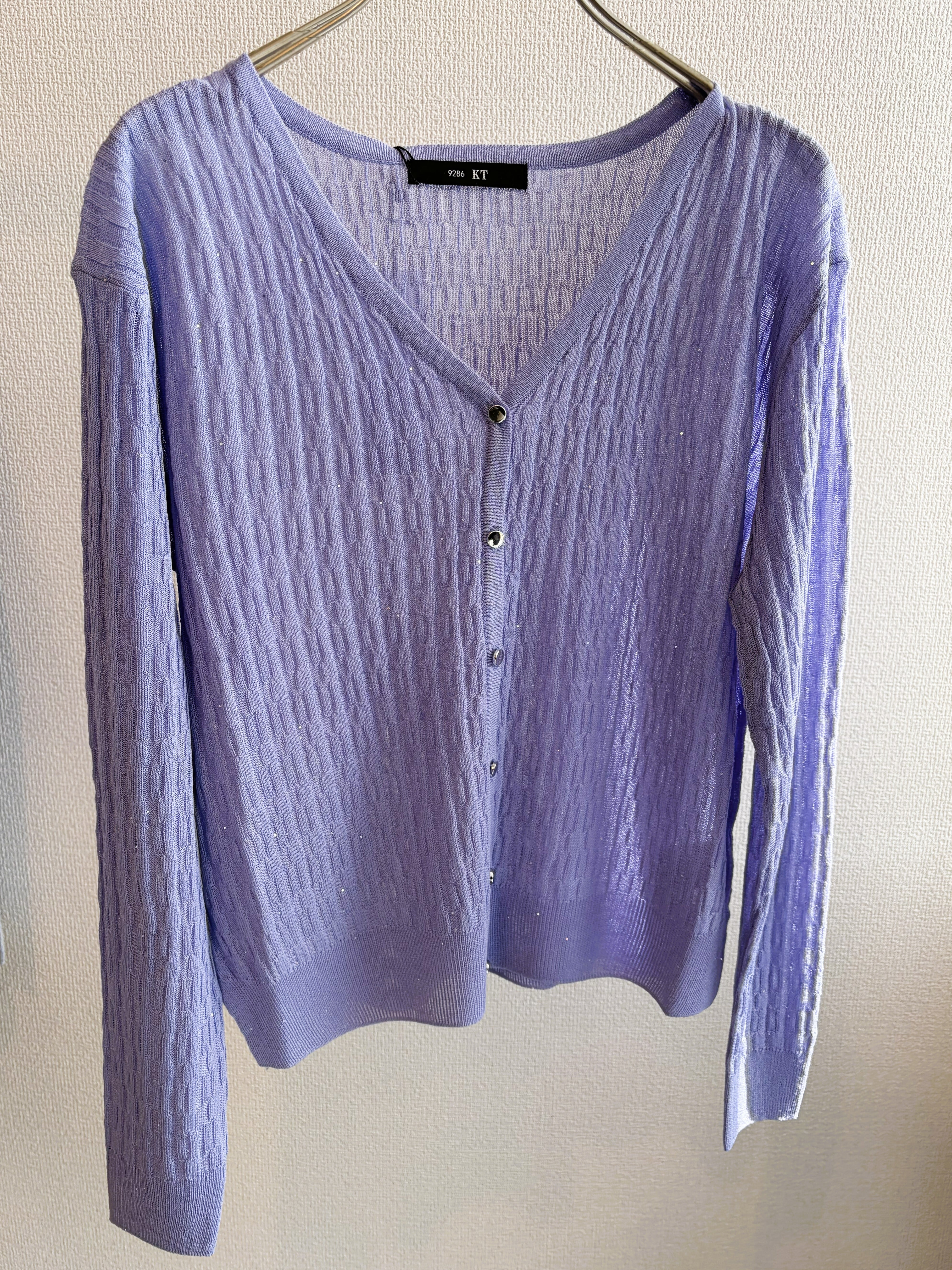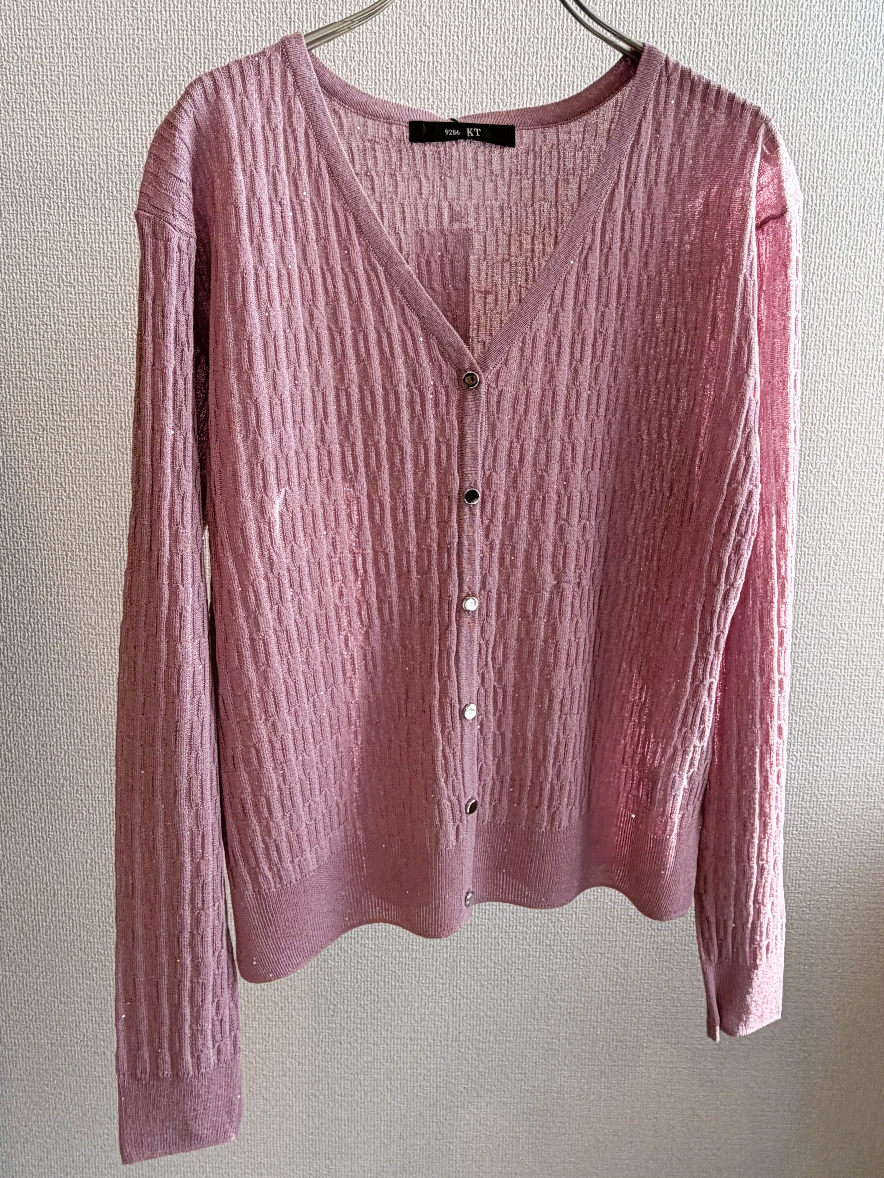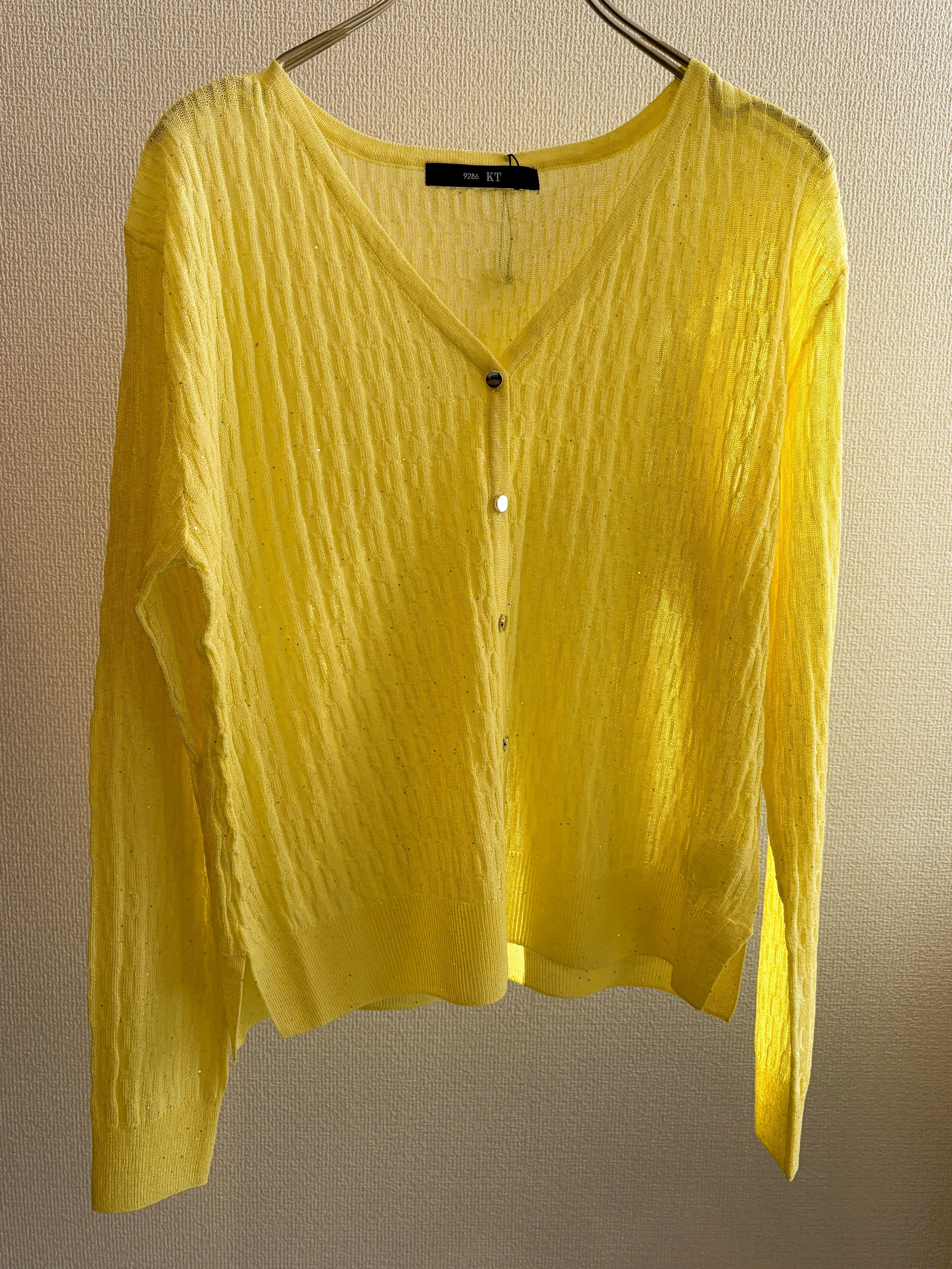 華やかなミニスパンコールイレギュラーリブプルカーディガン。