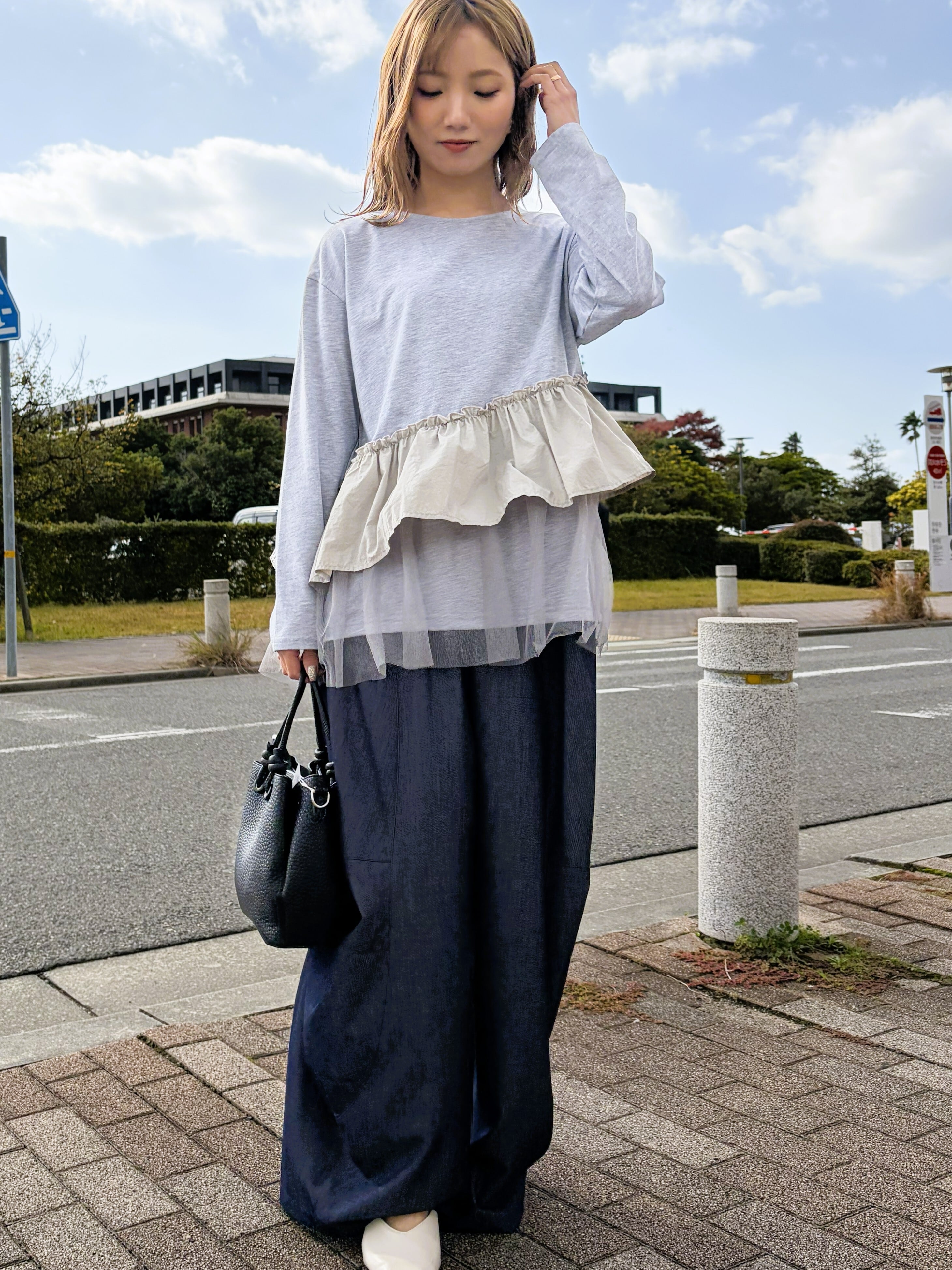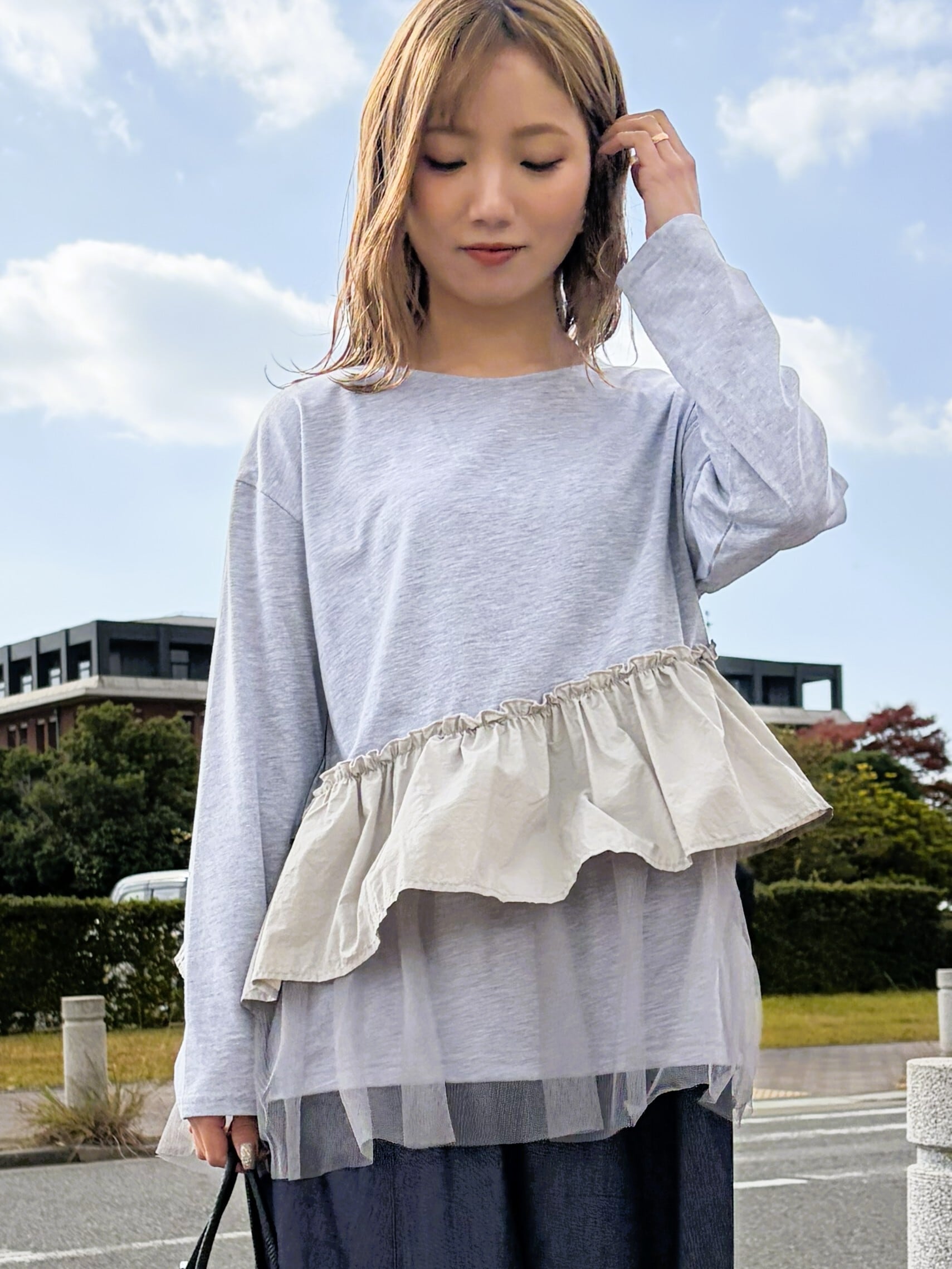 異素材フリルプルオーバー。