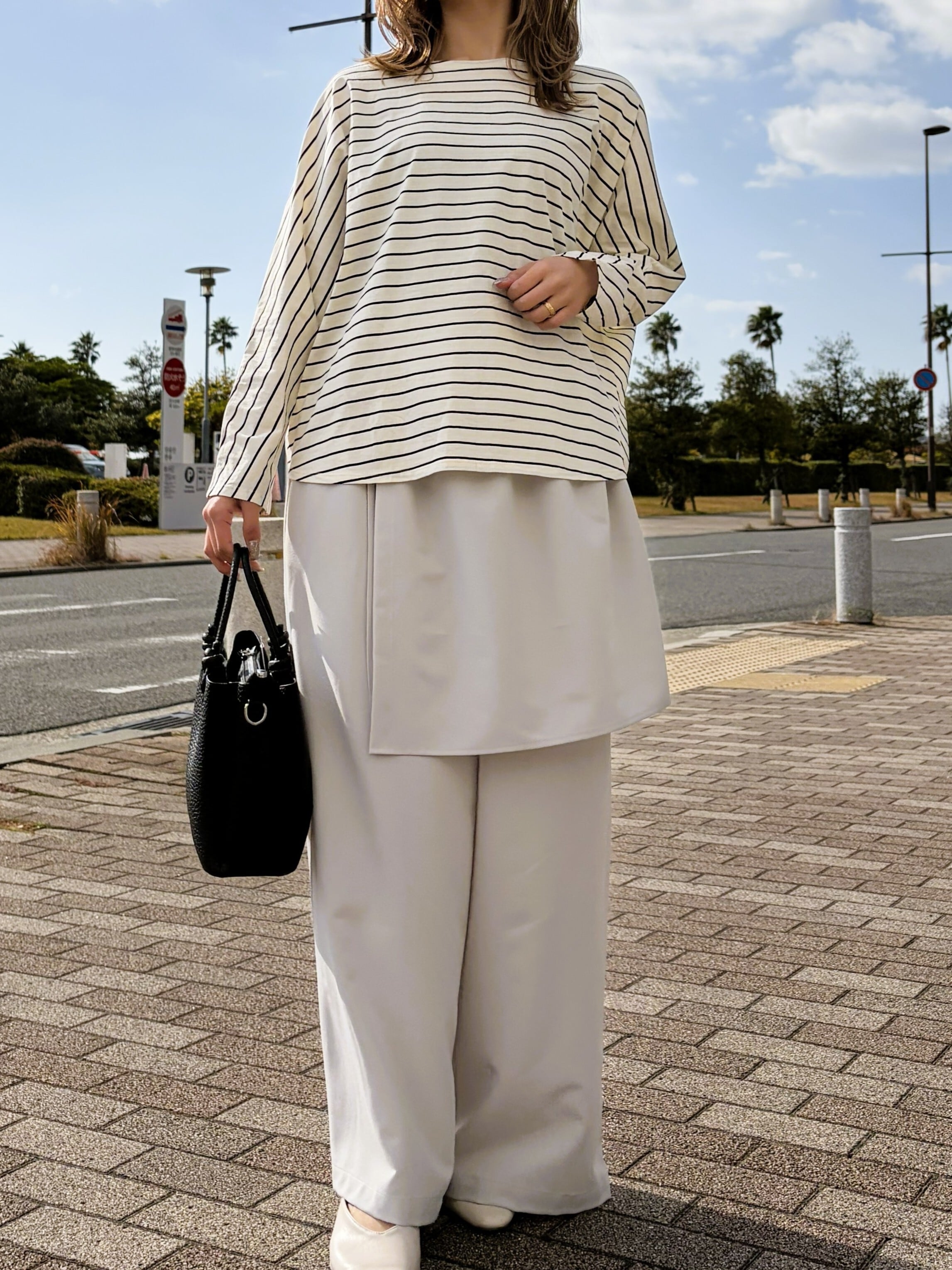 後ろ裾がヒップラインをきれいにみせるシルエットに仕上げ