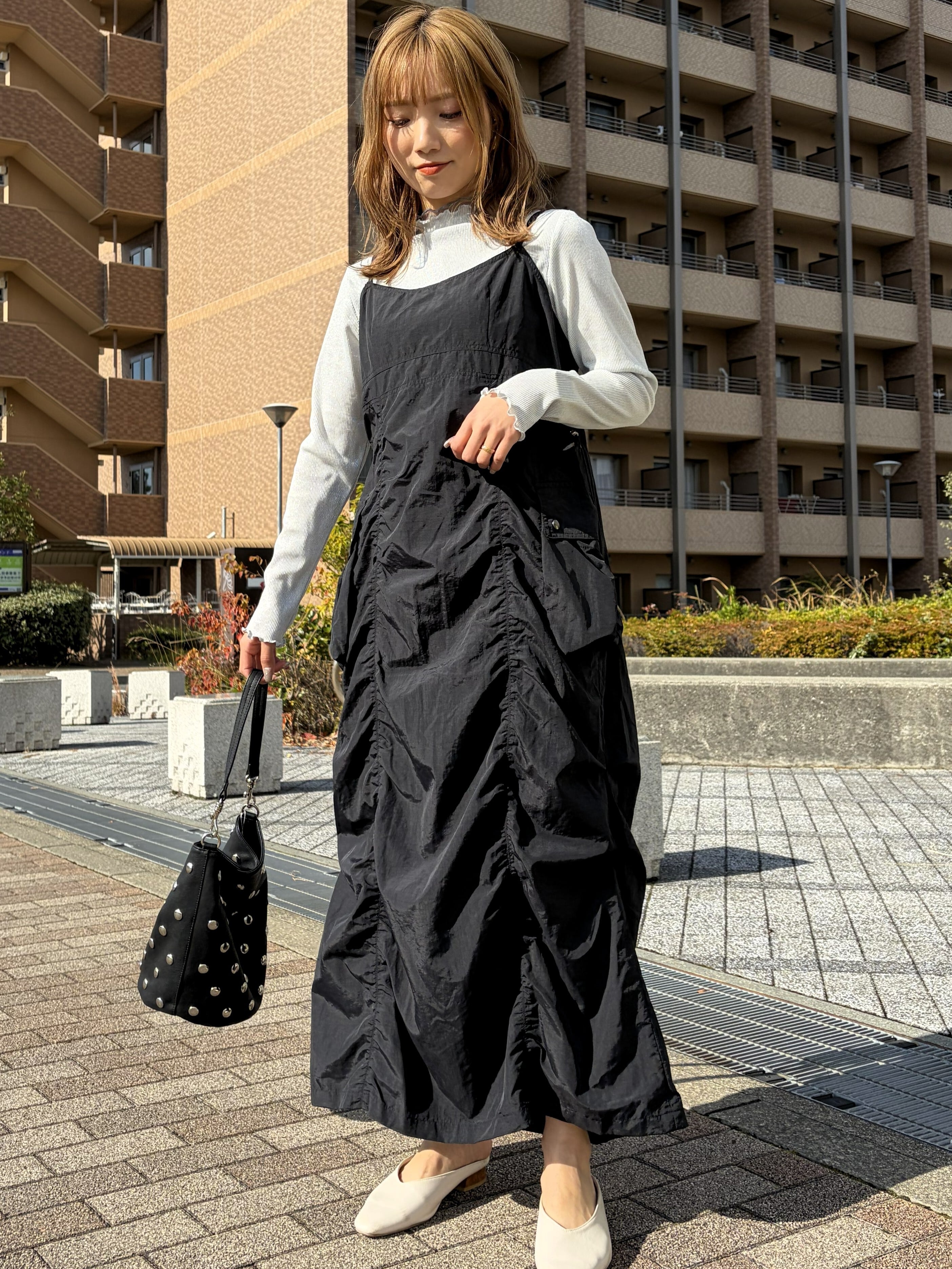 ギャザーが印象深い主役級の1着。