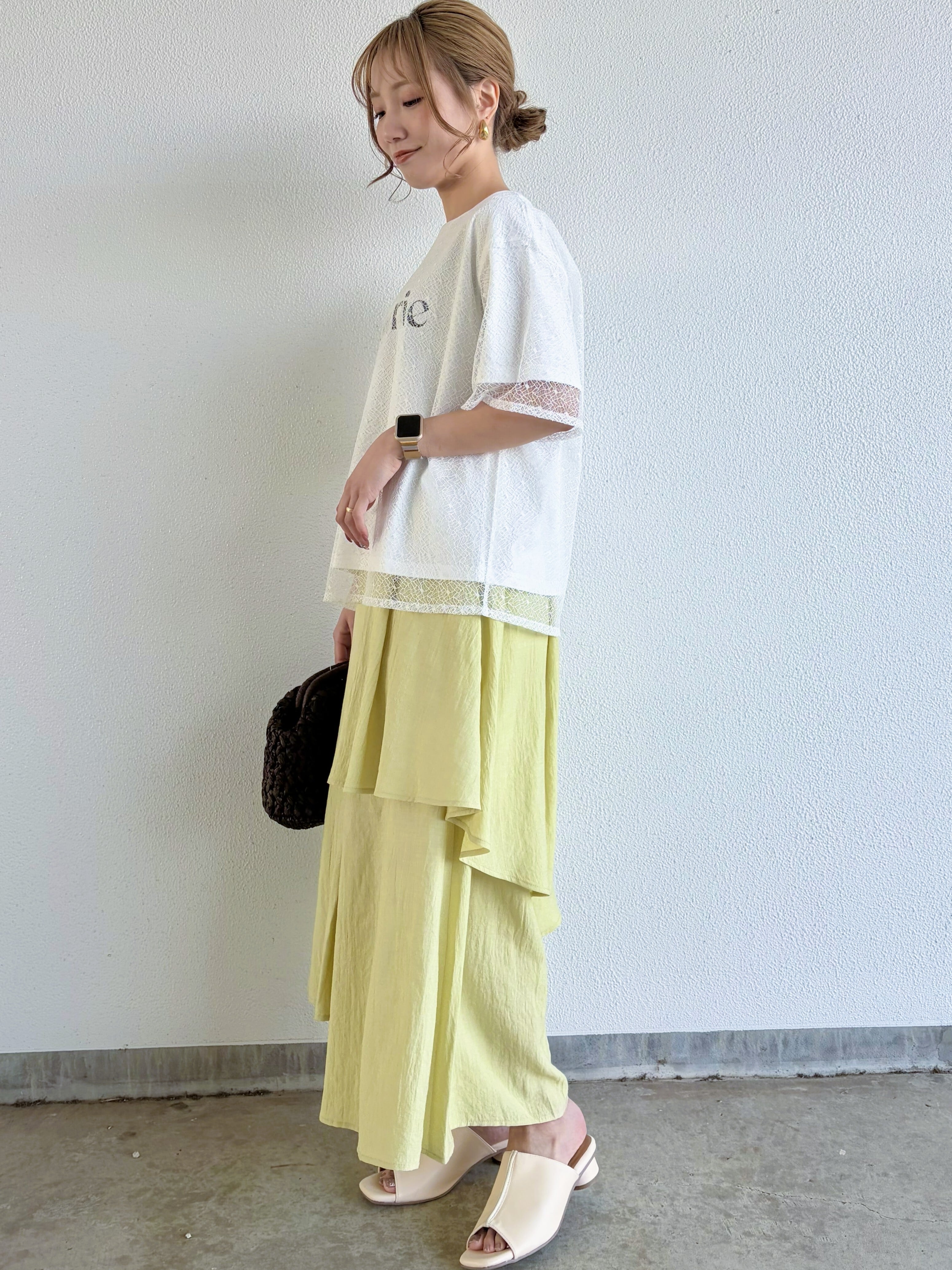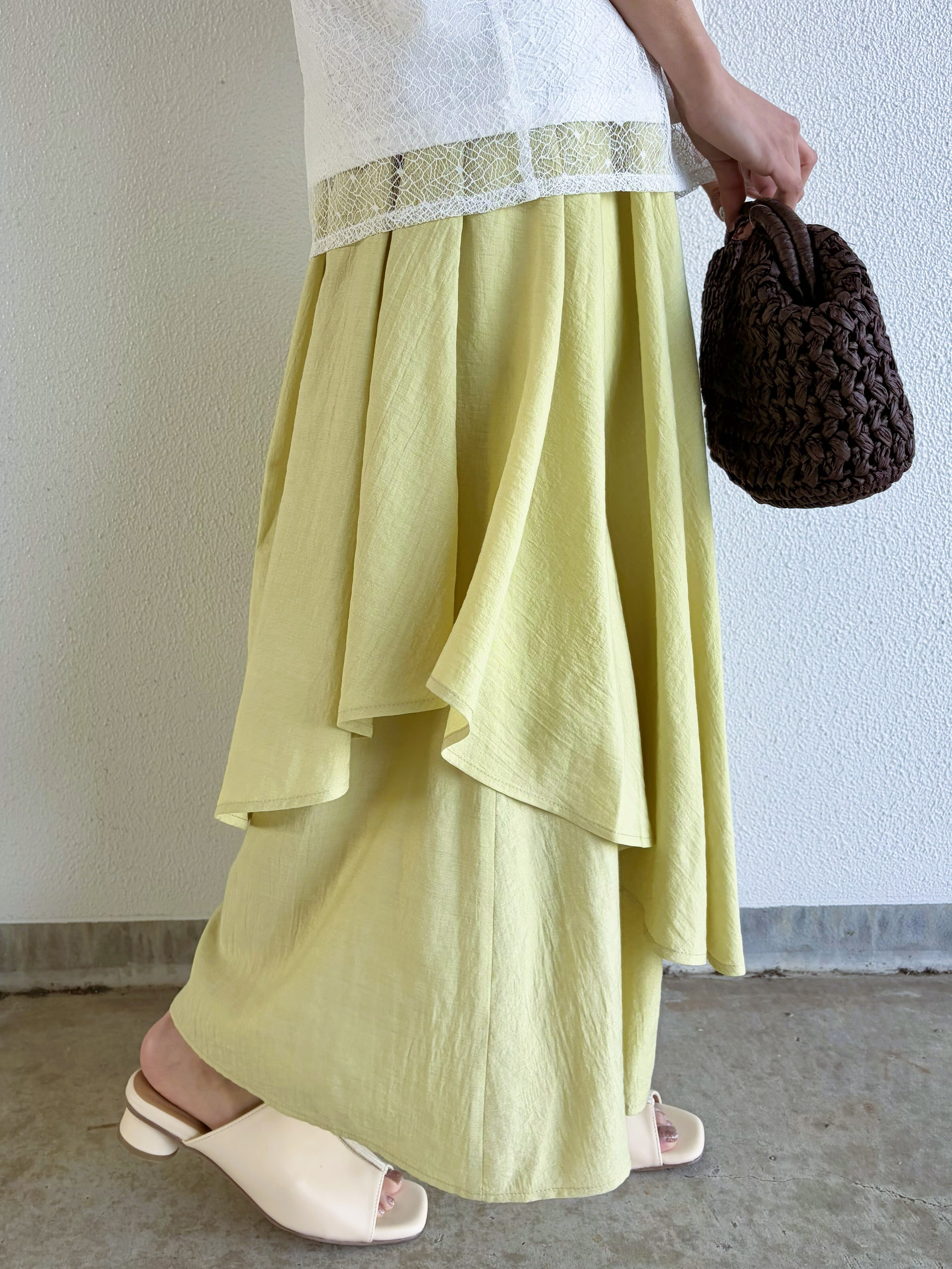 スカート見えするランダムペプラムスカーチョ。
