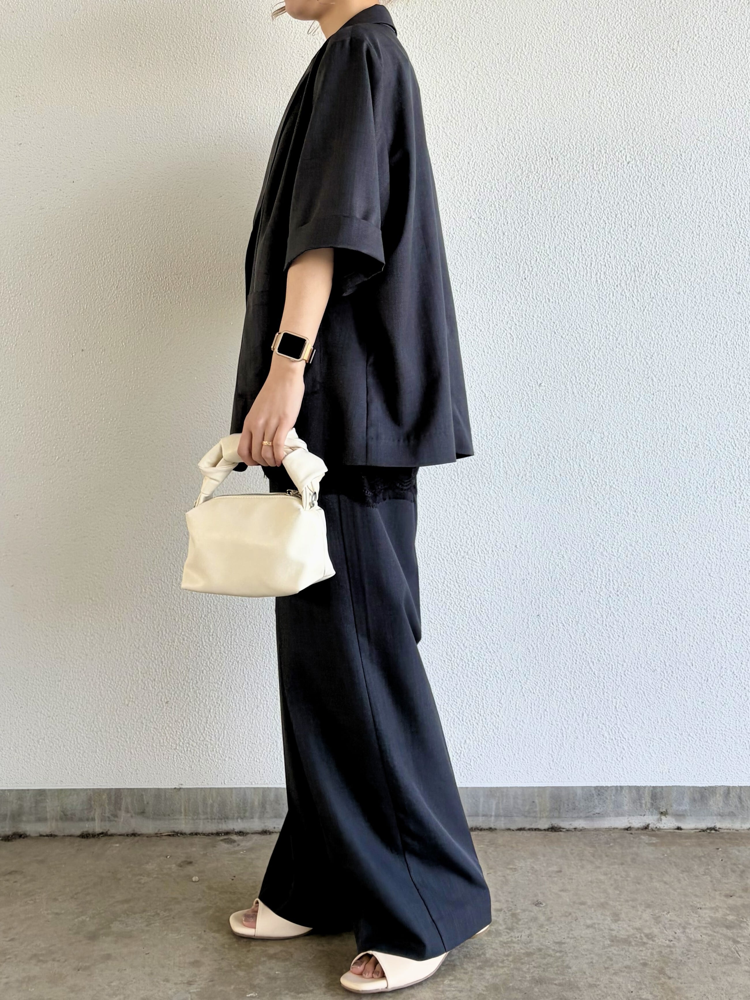 太めの袖口と丈感が腕を華奢にみせ